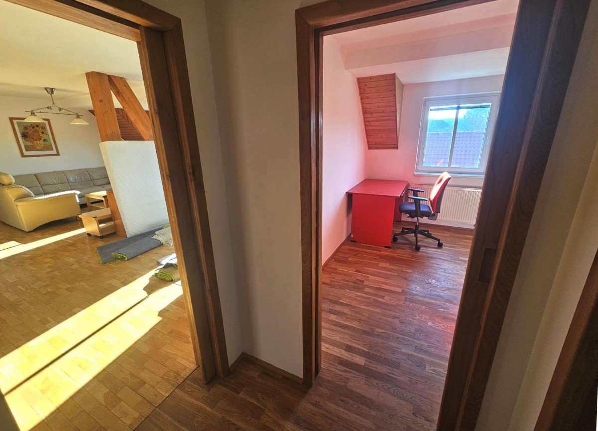 Pronájem moc hezkého mezonetového bytu 4+kk, 160m2, který se rozkládá v podkroví a prvním patře rodinného domu. V bytě se nachází 3 oddělené pokoje (podkrovní ložni...ce, dětský pokoj a ložnice).