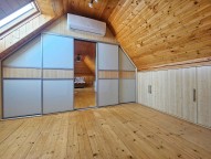 K dispozici jsou úložné prostory - vestavné skříně. Obývací část je velice prostorná, vybavená krbem a spojená s kuchyní, která je však opticky oddělena. Kuchyňská linka je velice prostorná a kompletně zařízená spotřebiči: varná el. deska, vestavná trouba a mikrovlnná trouba, lednice a myčka. Obývací část je dostatečně prostorná, aby její část posloužila jako jídelna. V koupelně je vana i sprchový kout. sociální zařízení WC je zvlášť. Topení elektrické. Zařízení dle fotek.