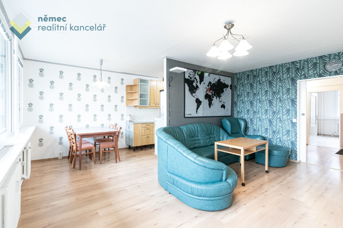 Byt je nyní dimenzovaný na čtyři obytné pokoje s kuchyňskou a jídelní částí.
