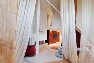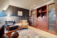 Dispozice tichého mezonetu zahrnuje prostornou vstupní halu, velkorysý, otevřený prostor obývacího pokoje s kuchyní, jídelnou s posezením pro 9 osob, obývací část s krbem, pracovnu a unikátní budoár ve věži se zachovanými původními trámy, dále pracovna, dětský pokoj, prostorná šatna, velká koupelna, technická místnost, úklidová místnost, prádelna, toaleta pro hosty, ve 2. podalží mezonetu je umístěna odpočinková zóna bytu, master bedroom se sen suit koupelnou, 2 komfortní velké šatny ( pánská, dámská), vstup na unikátní terasu s letní kuchyní, sprchou, jacuzzi a naprosto ohromujícími výhledy na střechy staré Prahy a panorama Pražského hradu.