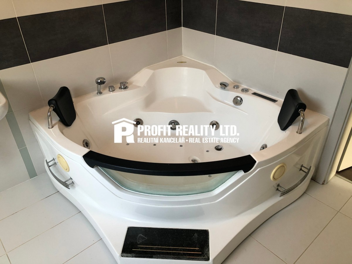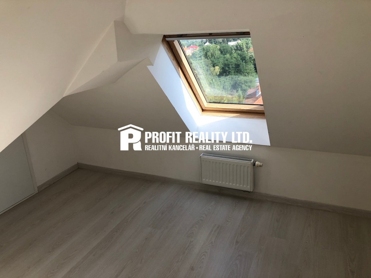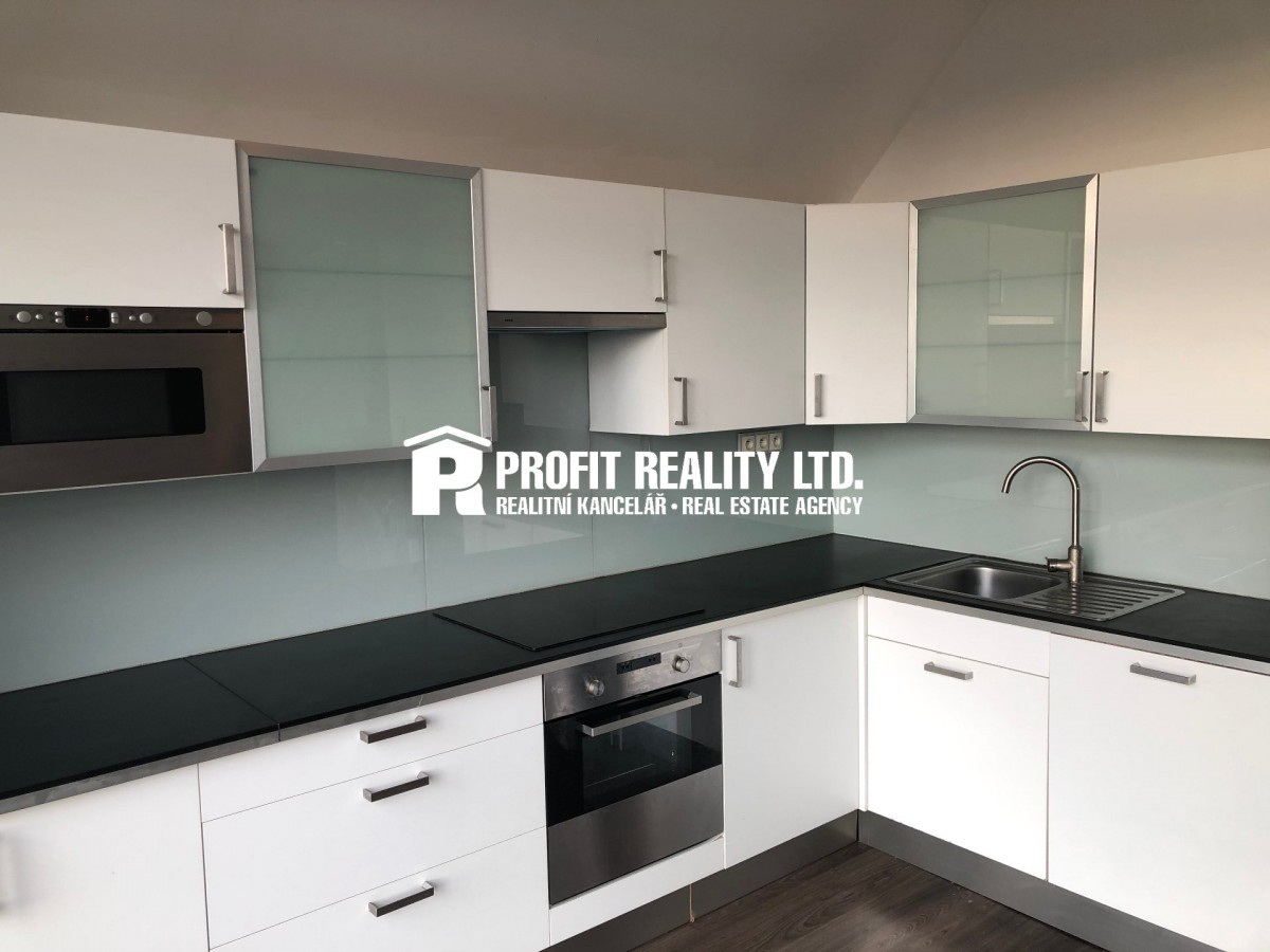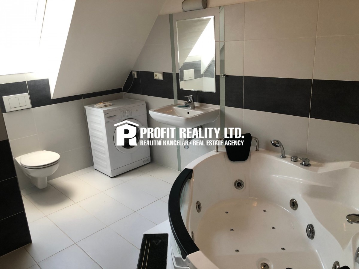 Pronájem luxusního atypického bytu o velikosti 5+kk, 129m2, v nejvyšším (3. a 4. ) patře bytového villa domu s úchvatným výhledem na údolí Vltavy s bakonem a teraso...u. Prosklená francouzká okna v délce přes 3 m navazují dále na balkon. Kuchyně v nadčasovém designu s podsvícením LED světly je vybavena troubou, mikrovlnou troubou, digestoří, myčkou, lednicí a indukční varnou deskou. Luxusní koupelna s vyhřívanou dlažbou, sprchovým koutem a rohovou vířivou vanou. Na podlaze jsou plovoucí podlahy a dlažba. Byt je vybaven bezpečnostními dveřmi, orientačními LED světly na chodbě, vestavěnou skříní ve schodišti do horního patra, přípravou na audio systém. Spodní patro bytu tvoří obývací pokoj s plně vybavenou kuchyní, francouzskými okny a terasou, 2 ložnice, koupelna s rohovou vířivou vanou, masážním sprchovým koutem a toaletou, šatna, toaleta pro hosty a vstupní chodba. V patře jsou dvě podkrovní ložnice a přístup na střešní terasu.