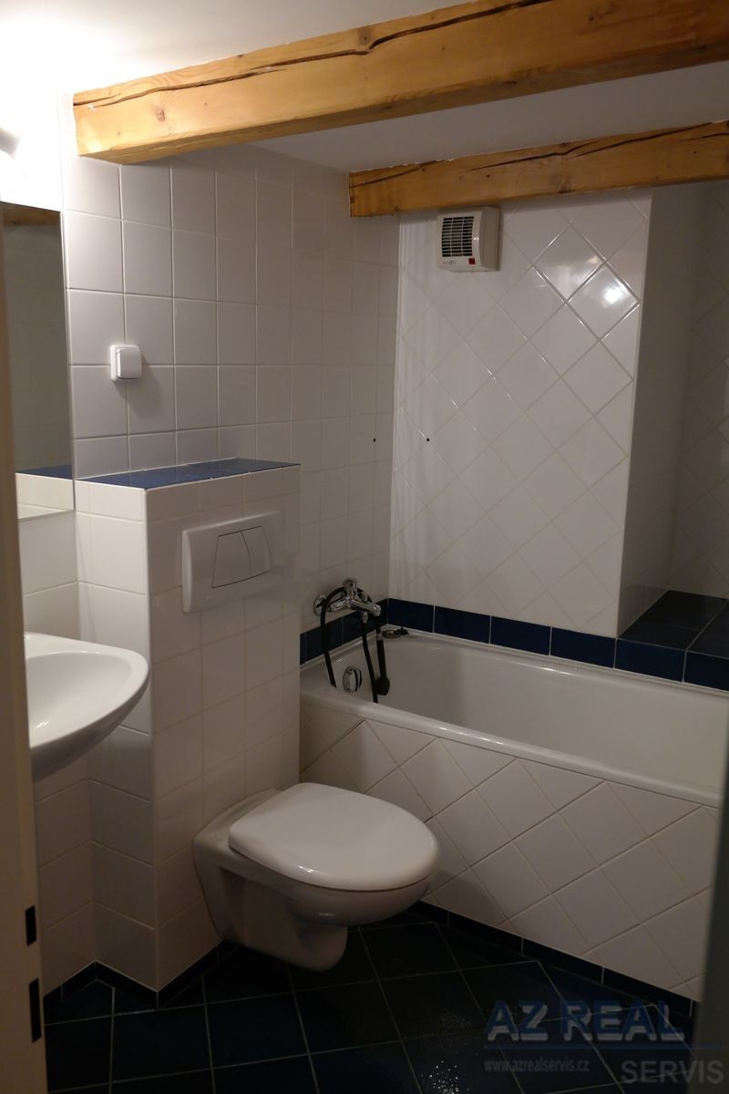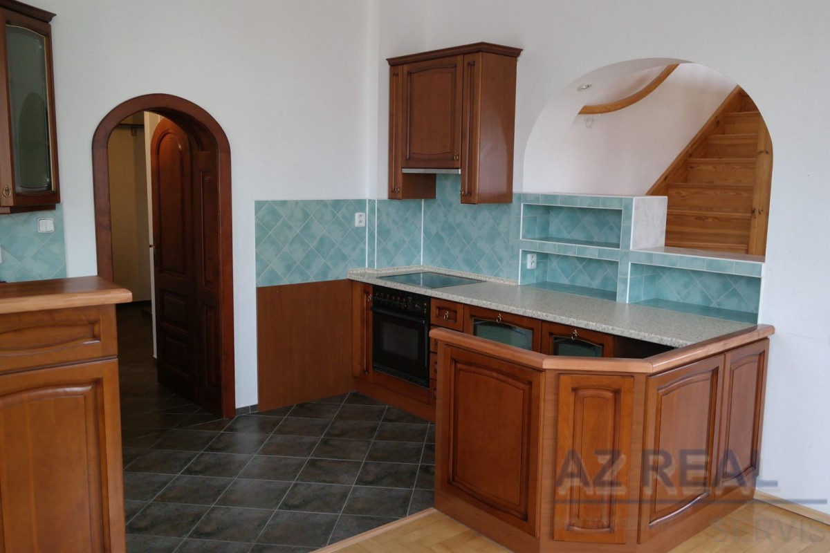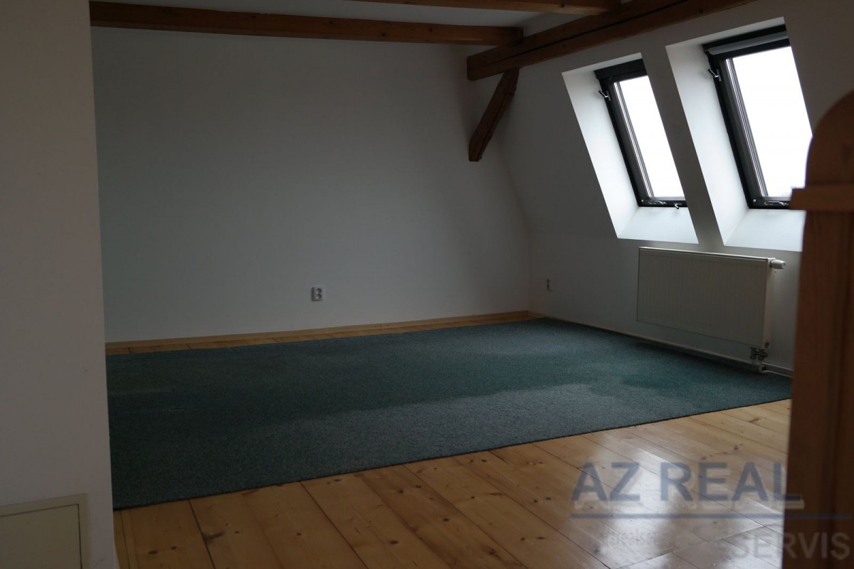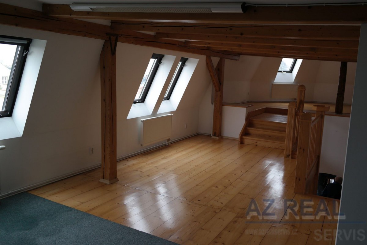 Exkluzivně nabízíme dlouhodobý pronájem nadstandardního podkrovního bytu v zrekonstruovaném domě v centru města Jablonce n. N. Dům je po kompletní revitalizaci fasády, oken i interiéru domu. Byt byl vybudován jako dvougene...rační s možností přepažení za vzniku dvou samostatných bytů. Každý má svou koupenu a kuchyňskou linku. Velmi hezky působí přiznané dřevěné trámy a krbová vložka, které vytváří příjemnou atmosféru bytu. Díky krbu se měsíční náklady na vytápění plynem s ohřevem TUV pohybují do pěti tisíc. Byt nabízí předsíň, ze které se jde do koupelny s sociální zařízení WC a do jídelny s kuchyňskou linkou. Odtud potom do místnosti obývacího pokoje s krbem, ze kterého vede dřevěné schodiště do podkroví. Tam se nachází velký členitější prostor s trámovým jako ložnice a velká šatna. Další místnosti patří již druhému bytu, který se skládá z předsíně s KK, atypickým obývacím pokojem, koupelnou a ložnicí. Vhodné pro větší rodinu nebo na ateliér spojený s bydlením. Dům je nekuřácký. Veškerá občanská vybavenost v místě.