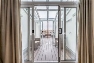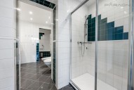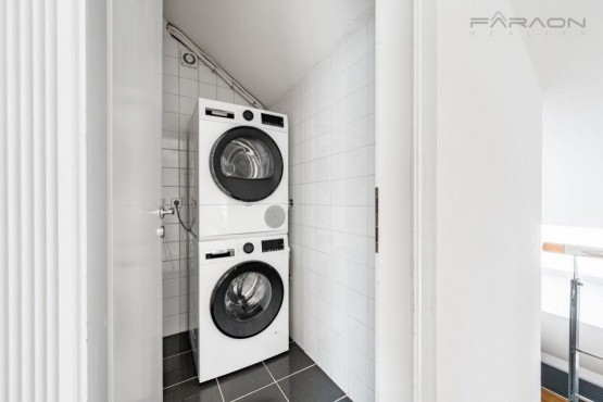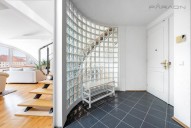 Dispozici tvoří: prostorný obývací pokoj (74 m2) s velkým oknem a výhledem na řeku, samostatná plně vybavená kuchyň oddělená skleněnou posuvnou příčkou, 4 oddělené ložnice, (z nichž 3 jsou situovány v patře, v klidové zóně mezonetu), 3 koupelny s vanou, sprchou a bidetem, 2 šatny, komora, prádelna s pračkou, vstupní hala a střešní terasa. Terasa je orientovaná do klidného vnitrobloku a navazuje na zimní zahradu. Dřevěná podlaha, kvalitní dřevěná okna, dlažba.