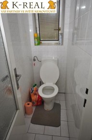 Součástí pokoje je výklenek na postel, postel je dvoulůžková, ale protože příslušenství ještě sdílí další dva nájemníci, hledáme jen jednoho nájemníka do pokoje (pro 4 osoby to by bylo už moc). Pokoj má celkem rozlohu 24 m2, a má i šatnu s oknem, malé skříňky a tyčku 1 m na šaty. Byt je dvoupokojový, vedle je další pokoj s jedním tichým nájemníkem pánem a třetí pokoj je o patro níž, též s mladým nájemníkem pánem, na víkend odjíždějícím.