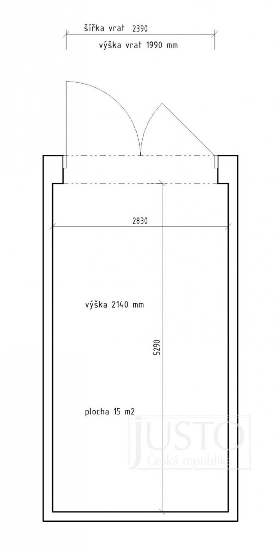 Jedná se o garáž umístěnou ve vnitrobloku k...terá má vnitřní rozměry 5, 29 x 2, 83 m a plochu cca 15 m².