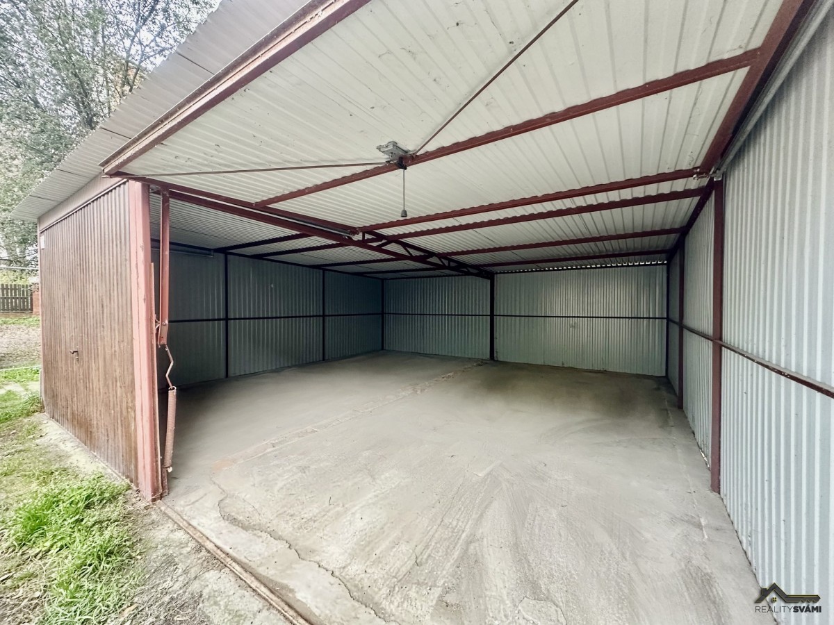 Garáž je dvojmístná, možno je však parkovat pouze jedno vozidlo. V druhé části je možno uskladnit věci nebo například motorky.