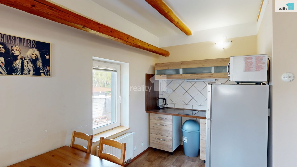 Penzion je případně možné funkčně spojit s vedlejší restaurací - barem, částečně využívaným i na zábavy a diskotéky, který má rovněž velký potenciál. Při pronájmu obou nemovitostí dohoda o ceně. Domluvte si prohlídku. Ev. číslo: 27885. Energetický štítek: G