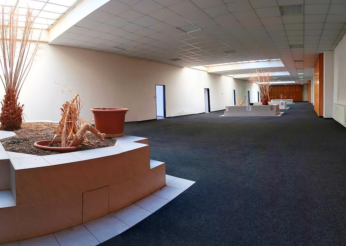 Kanceláře je součástí většího víceúčelového areálu a vše je k dispozici IHNED !!! Prostory v patře se děli na jednotlivé samostatné kanceláře 23 až 45 m2, dále vzájemně průchozí 2 až 3 kanceláře ( + - okolo 100 m2 ) a dále jako celek hlavní ATRIUM s bočními kancelářemi - - cca 800 m2 - viz foto. Vše vzájemně průchozí sociální zařízení WC, kuchyňka na společné chodbě. Vytápěno, internetové připojení Wifi, PC rozvody. Patro vždy samostatně uzamykatelné. Parkování v rámci areálu. . Přístup 24/7.