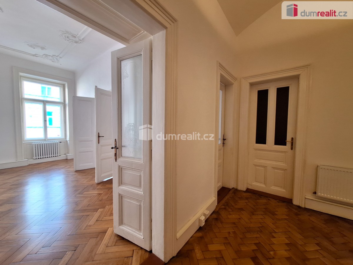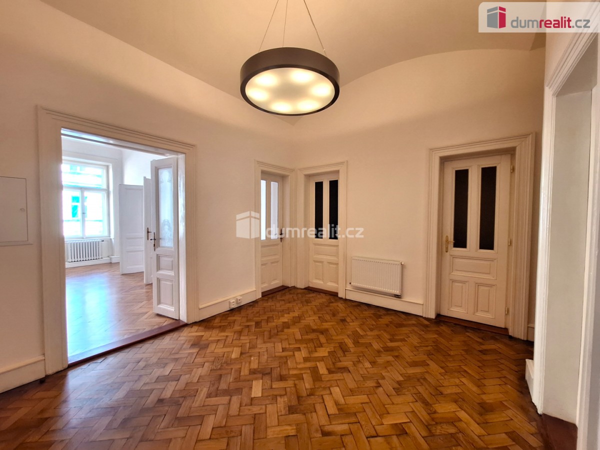 +popl. 1400 Kč, + plyn a elektrická energie. pronájem reprezentativních kancelářských prostor 4 kanceláří s příslušenstvím, 102 m², na P5 Malé Straně, v ulici Plaská. Prostory se nachází v 1 patře domu po kompletní rek...onstrukci fasády i vnitřních prostor se zachováním původních prvků. Dům se vstupem na čip, domovní zvonky s kamerou. Prostorná vstupní hala, čtyři kanceláře (každá se samostatným vstupem), kuchyňka, koupelna s vanou, dvě toalety, úklidová komora, sklad. Ve větších místnostech zachovalé reliéfy na stropech, na podlaze parketová podlaha a dlažba. Teplo a ohřev vody vlastním plynovým kotlem. Plyn a elektrická energie se převádí na nájemce. Internet v každé místnosti. Na patře je k dispozici obdobný prostor, oba lze pronajmout současně. V domě osvětlení na čip a kamerový systém. Prestižní a vyhledávaná lokalita, doporučuji! Ev. číslo: 649666. Energetický štítek: G
