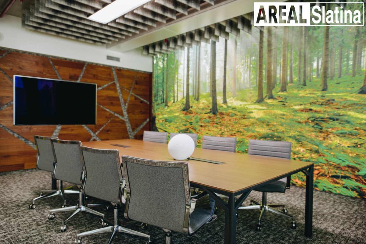 - Zdravé pracovní prostředí vytvořené bezprůvanovou klimatizací chladícími trámy s filtry F9, parním zvlhčováním vzduchu a regulací CO2; trojskla se solární ochranou