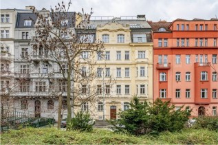 Dispozici prostorného bytu tvoří otevřený koncept obývacího pokoje s arkýřem a krbem severně orientovaného do Riegrových sadů s velkou jídelní částí a navazující kuchyní, dále hlavní ložnice s en - suite koupelnou (sprchový kout, toaleta), druhá ložnice, koupelna (vana, bidet, toaleta). Obě ložnice jsou zaměřené do klidného vnitrobloku, prostorná vstupní hala. Plynový kondnezační kotel. Funkční krbová kamna.