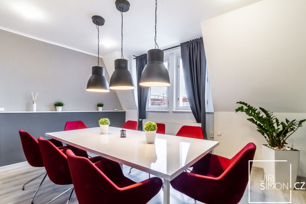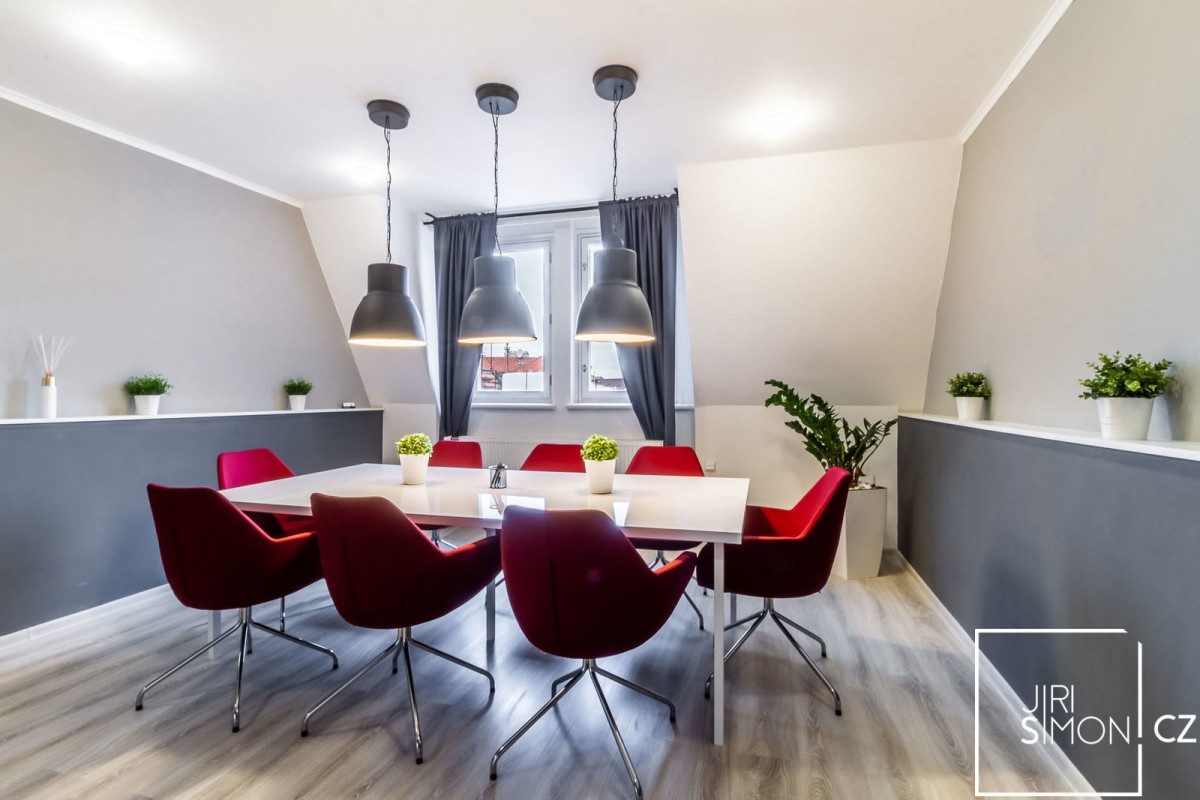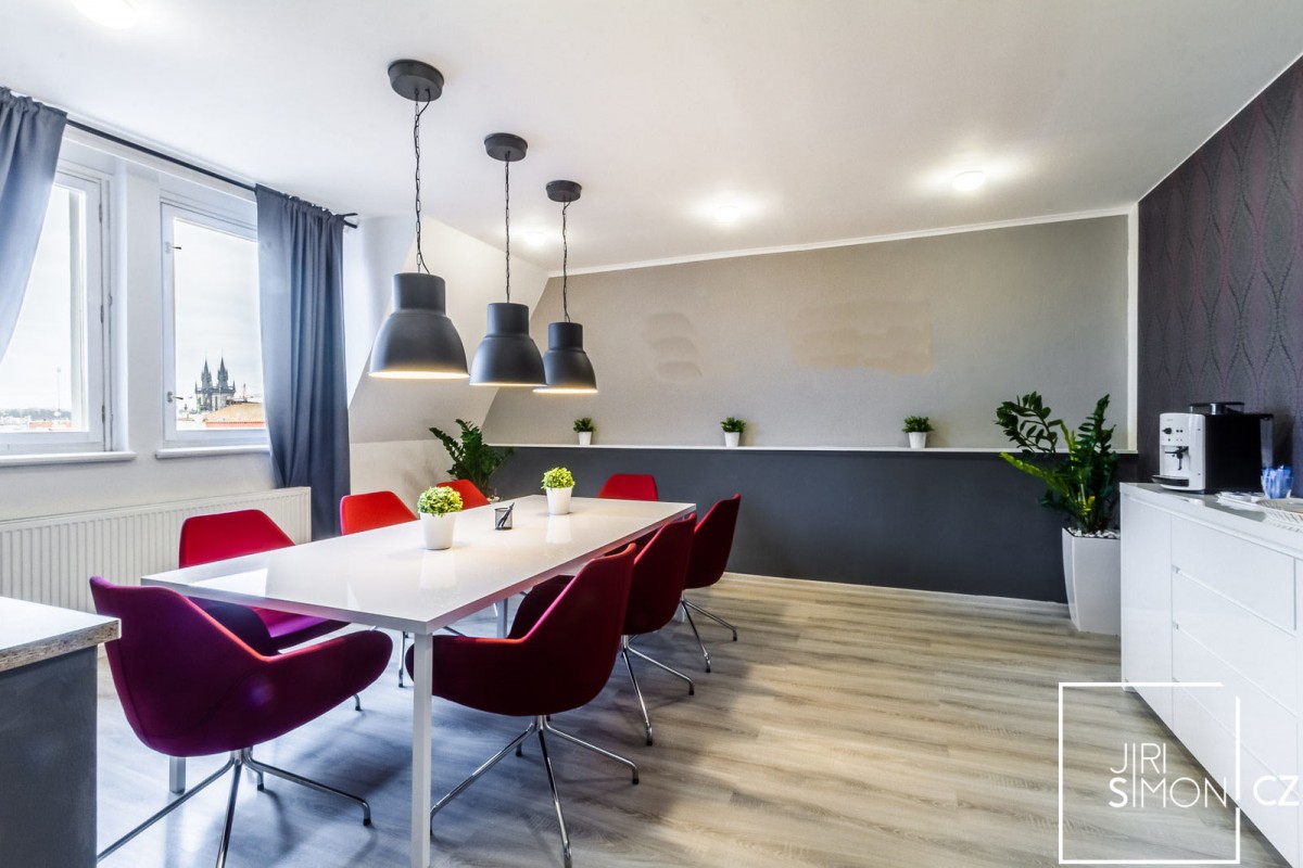 Nabízíme k podnájmu kancelář 12 m2 v centru Prahy na Národní ulici 39. Ke kanceláři jsou k dispozici a užívaní společné prostory (kuchyňka, hala, sociální zařízení) a dále je v ceně občasné využívání reprezentat...ivní jednací místnost v prostorách kanceláří. Nabídka je určena pro někoho, kdo chce mít možnost reprezentativního jednání v jednací místnosti a skromného občasného zázemí na skvělé adrese v centru města. Prostor je umístěn v posledním patře hezkého činžovního domu včetně výtahu. Krásný výhled na Staré Město. Cena za pronájem je včetně všech poplatků a služeb i internetové připojeníového připojení.