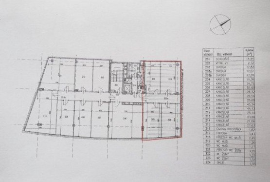 Prostory se skládají ze čtyř kanceláří (26, 06m...>2, 26, 72m2, 21, 06m2, 27, 63m2) a dále ze společných prostor, kde se nachází zařízený kuchyňský kout a toaleta.