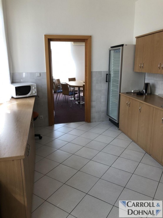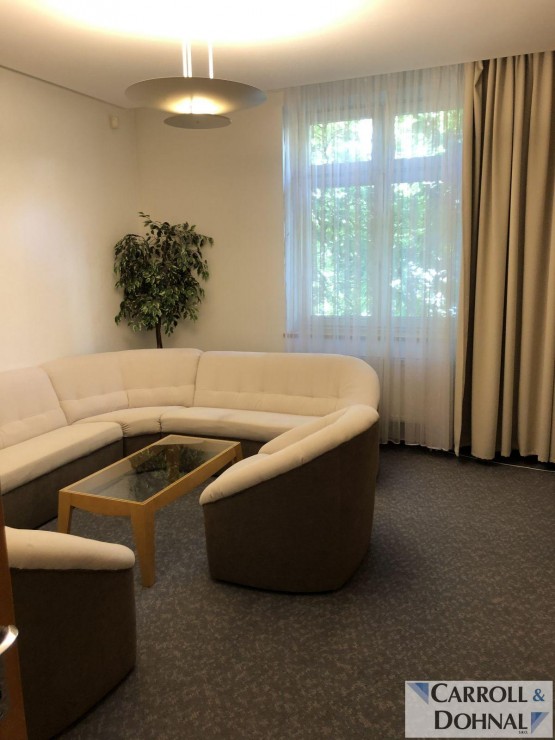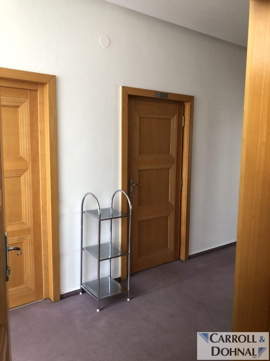 Nabízíme k pronájmu soubor kancelářských prostor s veškerým vybavením. Prostory jsou umístěné ve 2. podlaží, zabírají celé podlaží třípodlažní zrekonstruované secesní vily. Hlavní prostor je koncipován jako velká jednací ...místnost s dataprojektorem, stoly a židlemi, může být rozdělen na dvě samostatné místnosti. Další samostatná kancelář je vybavena sedací soupravou a konferenčním nábytkem. K prostorám dále patří chodby, kuchyňka s vybavením a myčkou, oddělené toalety. Prostory užívala advokátní kancelář.