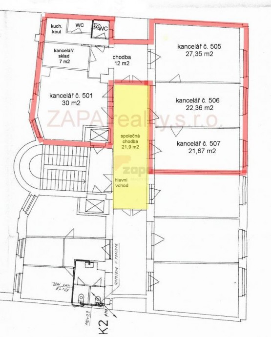 NEPLATÍTE PROV (osobní vlastnictví)IZI RK!! Exkluzivně nabízíme k pronájmu soubor čtyř nezařízených kanceláří s příslušenstvím o celkové výměře 131, 5 m2 v pátém patře administrativní budovy v centru Prahy s výhled...em do ulice Národní nebo do klidného vnitrobloku, přímo u metra Národní Třída (trasa B) a tramvajové zastávky. Součástí prostor je vlastní sociální zařízení (2 krát sociální zařízení WC), kuchyňka, 1 sklad nebo další menší kancelář (7m2), IT kabeláž, zaveden kabel UPC, klimatizace, recepce v přízemí domu, 2 krát nový výtah, ostraha 24 hodin. Dále je k dispozici chodba - vstupní hala o velikosti 21, 9 m2 společná s dalšími kancelářemi na patře. V suterénu budovy lze využívat restauraci, kde je možné si extra pronajmout menší salonek (8 míst) nebo větší salonek (25 míst) pro prezentace a firemní akce (cena dle dohody) a nebo kinosál s promítačem (75 míst) za 800, - Kč/hod+DPH. Nájemné za 4 kanceláře včetně příslušenství o velikosti 131, 5m2 činí 53. 000, - Kč/měs. Dále se hradí měsíční poplatky za služby ve výši 90, - Kč/m2/měs. +21%DPH. Prostory jsou volné okamžitě, prohlídka možná po telefonické dohodě. NÁJEMCE NEPLATÍ PROV (osobní vlastnictví)IZI RK.