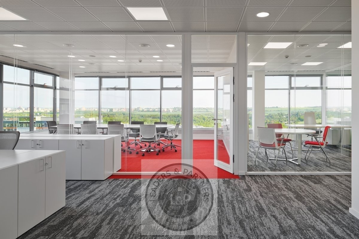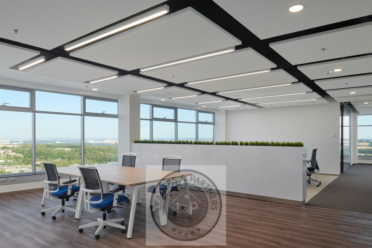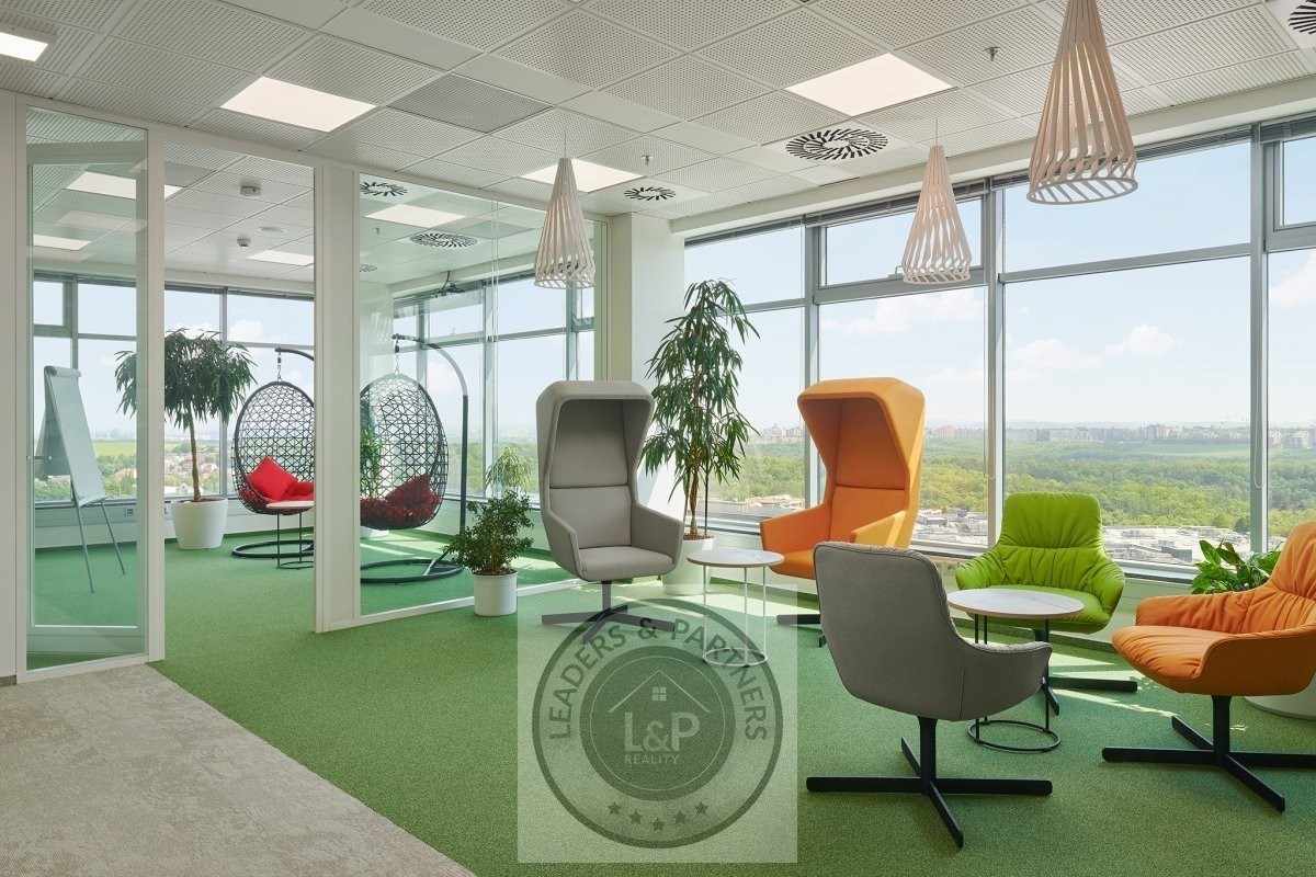 Nabízíme pronájem kancelářských prostor o celkové ploše 134m2 s pěkným výhledem v 15NP (patnácté nadzemní patro) v moderním business centrum na Praze 5. Administrativní komplex se nachází přímo u stanice metra No...vé Butovice, v těsné blízkosti Rozvadovské spojky. Prosklené kanceláře s přirozeným denním světlem a výhledem nabízejí zasedací místnosti s videokonferenční technikou, telefonní linky s vysokorychlostním internetové připojeníem, business lounge včetně zázemí s kuchyňkou.