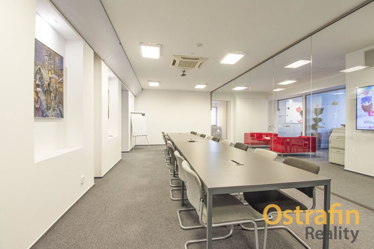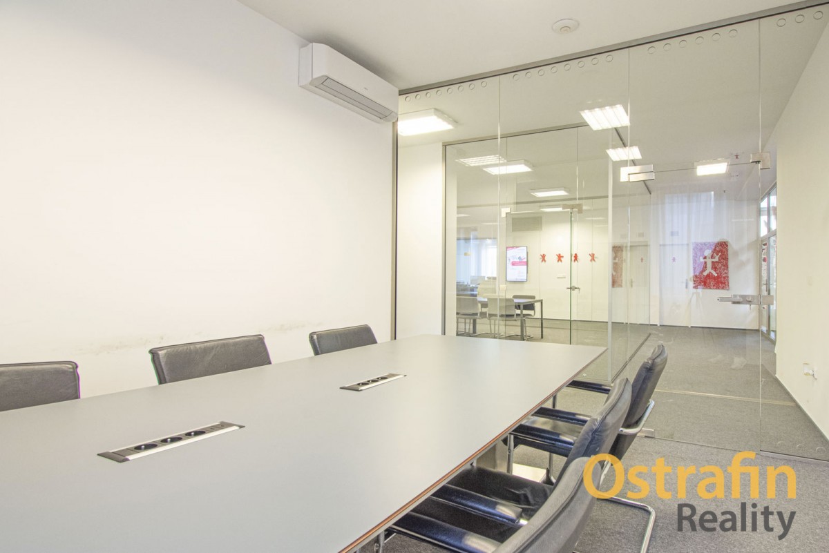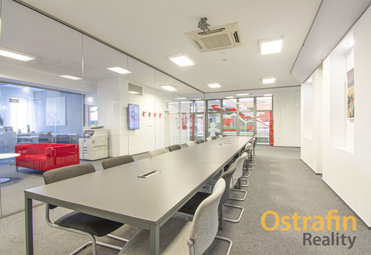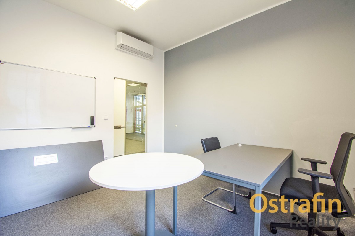 Kancelář je plně vybavena, takže Vám odpadnou starosti na pořízení nábytku. Kancelář je klimatizovaná, velká zasedací místnost je vybavena také rekuperační jednotkou.