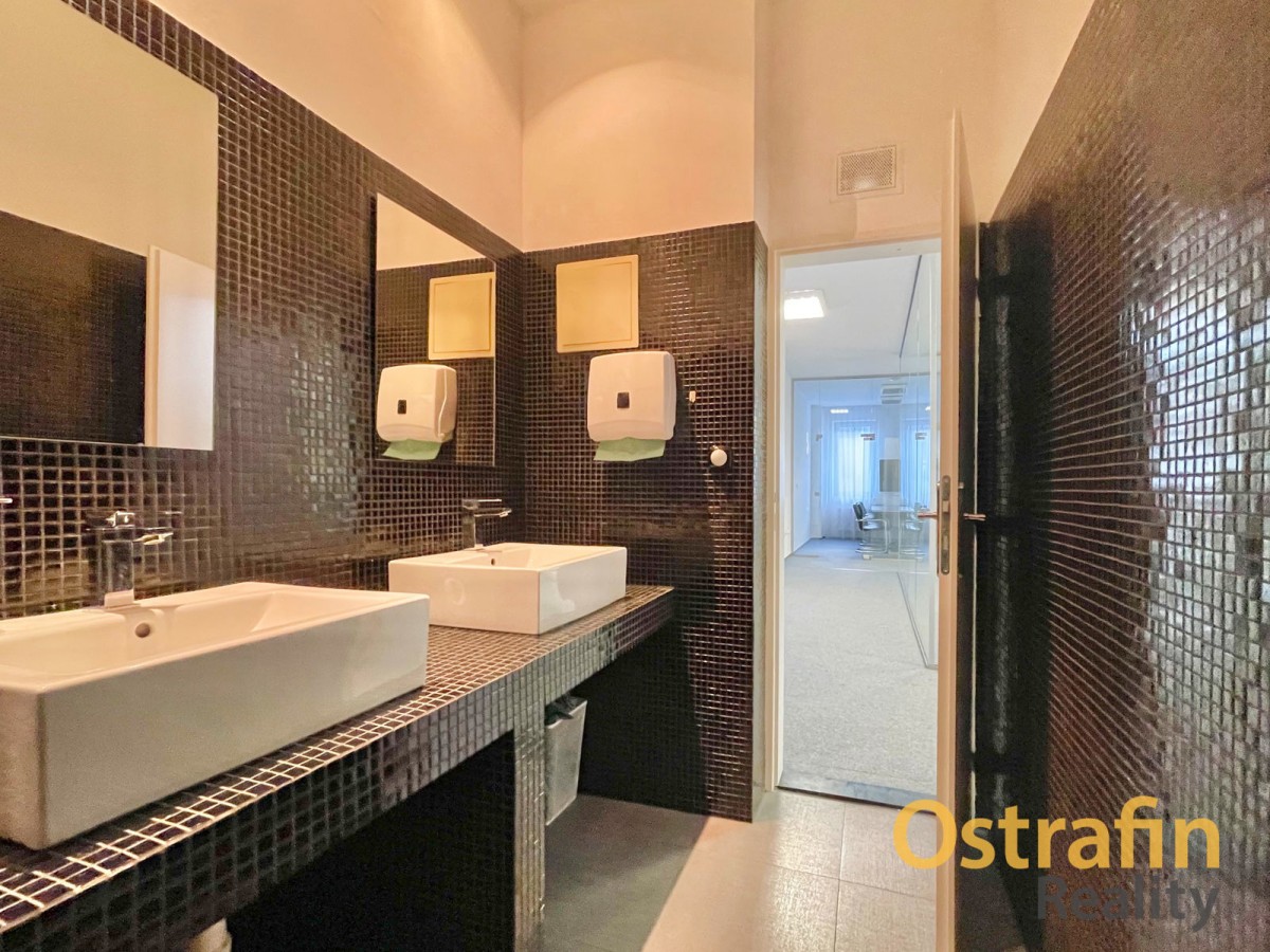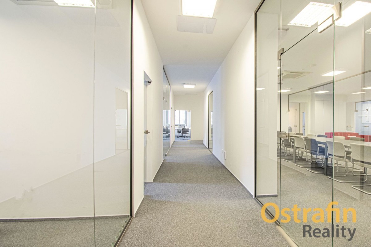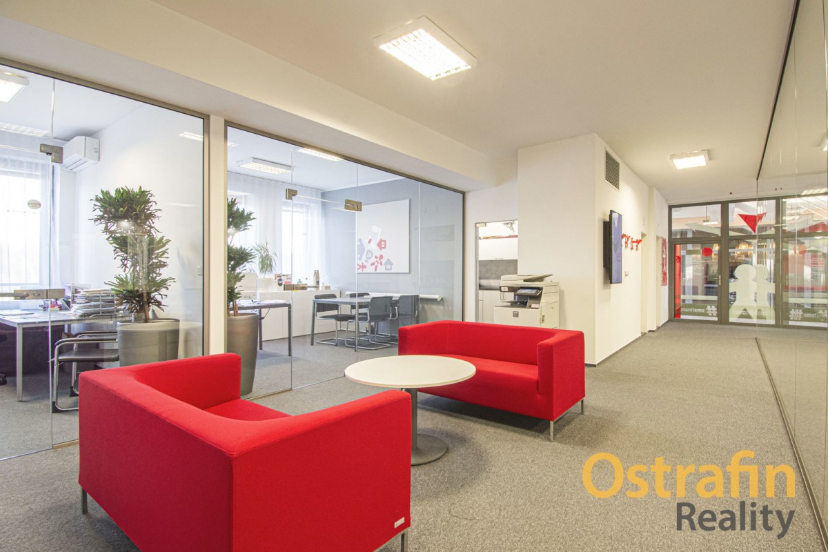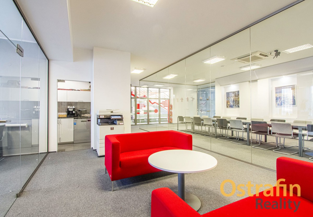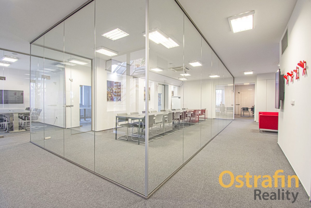Samotná kancelář se nacházejí ve 2. NP (druhé nadzemní patro) a společné prostory jsou využívány finančněporadenskou společností, která zde sídlí již 2 roky. Před dvěma lety také proběhla kompletní rekonstrukce těchto prostor. K dispozici je samotná kancelář o výměře 12, 3 m2 + společné prostory (131 m2). Společné prostory nabízí prosklenou zasedací místnost pro cca 25 - 30 lidí, menší zasedací místnost pro cca 10 lidí, kuchyňku, 2 krát toalety (pánské i dámské), chill zónu, prostor pro tiskárnu, společné chodby a sklad. Kuchyňka je vybavena lednicí, mrazákem, kávovarem a ledovačem. V případě, že byste potřebovali více prostoru, lze vše se současnými nájemci jednoduše probrat.