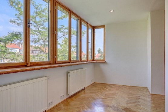 Nabízíme k pronájmu ateliér / kancelářský prostor ve funkcionalistické vile, Praha 6, Břevnov - ulice Na dělostřílnách. Plocha 150 m2 - podélná stěna hlavní místnosti je prosklená - společně se stropním ok...nem vytváří velice příjemný, atypický a světlý prostor. Vhodné jako kanceláře, studio, případně k jiným účelům. K dispozici je také kuchyňka, dvě toalety. Okna jsou nad úrovní terénu a mají bezpečnostní mříže. Dveře do prostoru jsou bezpečnostní od firmy NEXT. Alarm. Garážová stání možno pronajmout za poplatek.