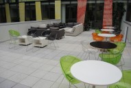 Uzavřená kancelář na kód má vlastní sociální zařízení i kuchyňku. Samozřejmostí je klimatizace místností a speciální chlazení z podlahy. K dispozici velká vnitřní terasa v atriu budovy, kde lze i pracovat s možnosti el. i Wi - Fi. Dále krásná venkovní terasa s posezením.