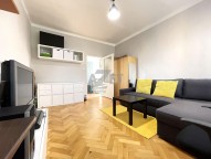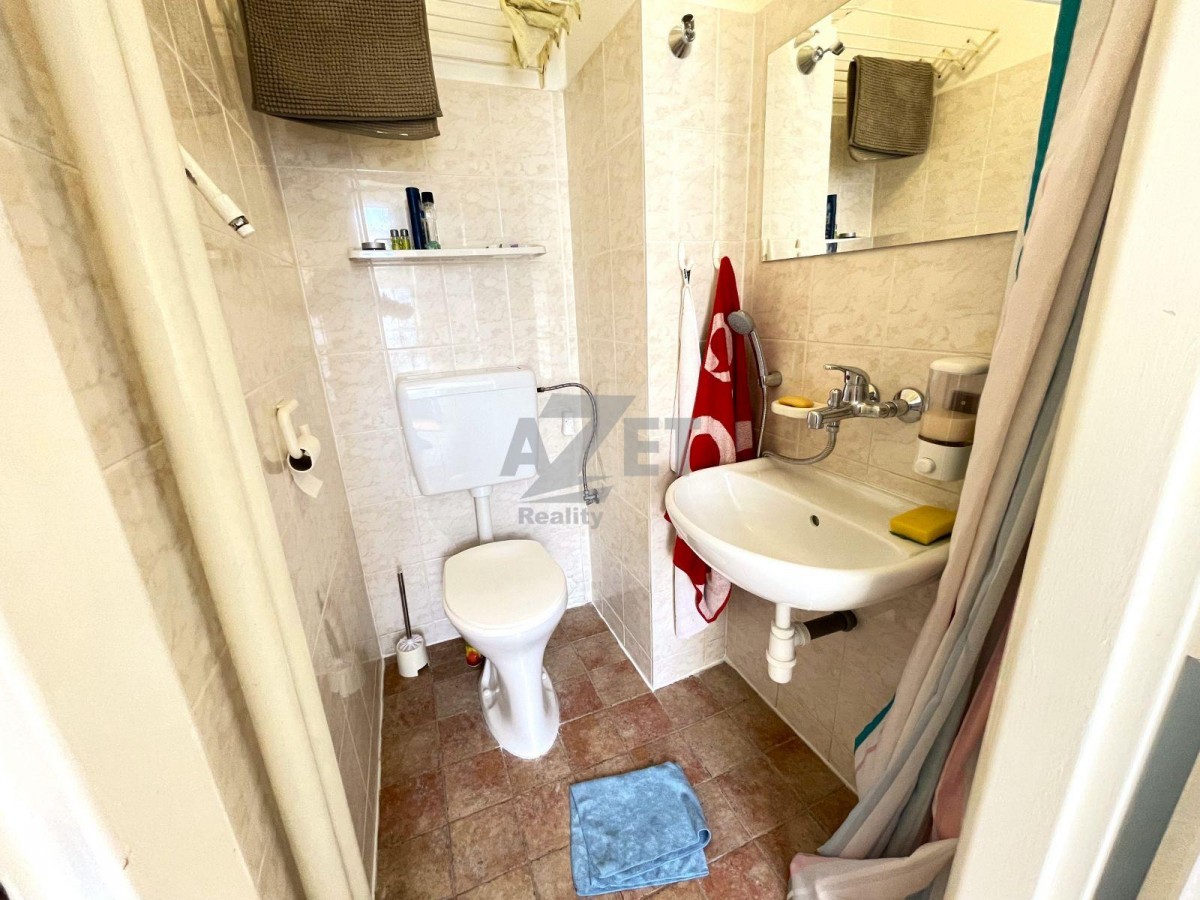 V prostoru koupelna společně s soc...iální zařízení WC, vybavena menším sprchovým koutem a umývadlem se zrcadlem. V předsíni prostor, který je využíván jako menší kuchyně vybavená kuchyňskou deskou, regálovým systémem, mikrovlnou troubou a lednicí. Hlavní obývací místnost s výhledem do zeleně je vybavena moderní sedačkou, konferenčním stolkem prostornou šatní skříní, psacím stolem, televizí, dvěma komodami, skládacím jídelním stolkem a a závěsnými skříňkami.