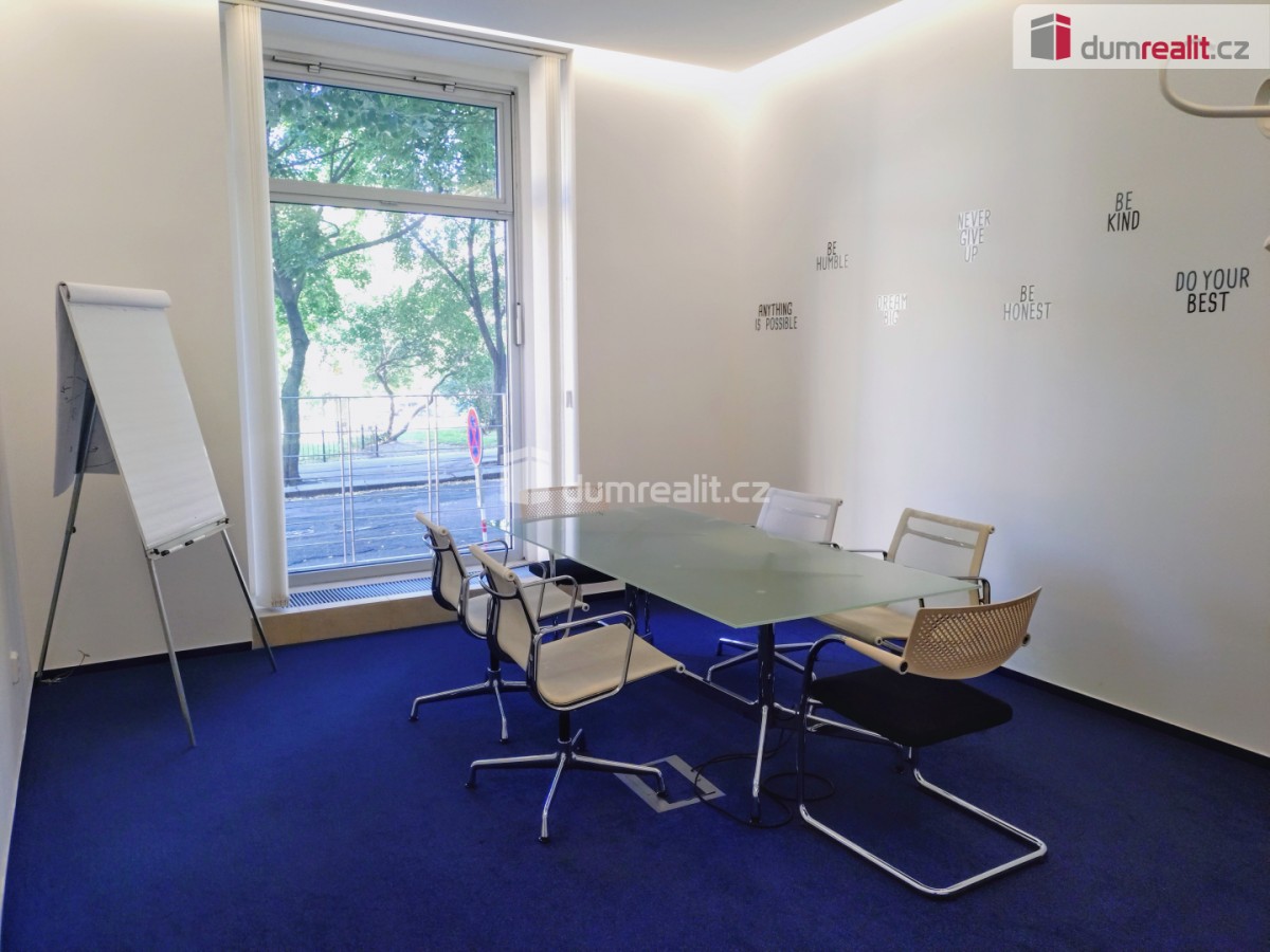 Kancelář je světlá, klimatizovaná..., na podlaze je koberec a v případě zájmu je možné si ji pronajmout včetně nábytku. Prostředí kanceláře je velmi klidné. Kuchyňka a toalety jsou ve společných prostorách. K dispozici je recepce, výtah, přístup do kanceláře je možný 24/7. Za poplatek internetové připojeníové připojení.