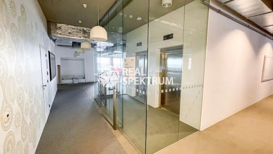 Celková výměra jednotky je 270 m2. Flexibilní možnost uspořádání prostor, celo - prosklená fasáda. Jedná se o vybudované prostory po předchozím nájemci, klientské změny jsou samozřejmě možné. Dle aktuální dispozice se jedná o 3 větší kanceláře + 1 menší, 3 x zasedací místnost, kuchyňka, skládek a vlastní sociální zázemí.