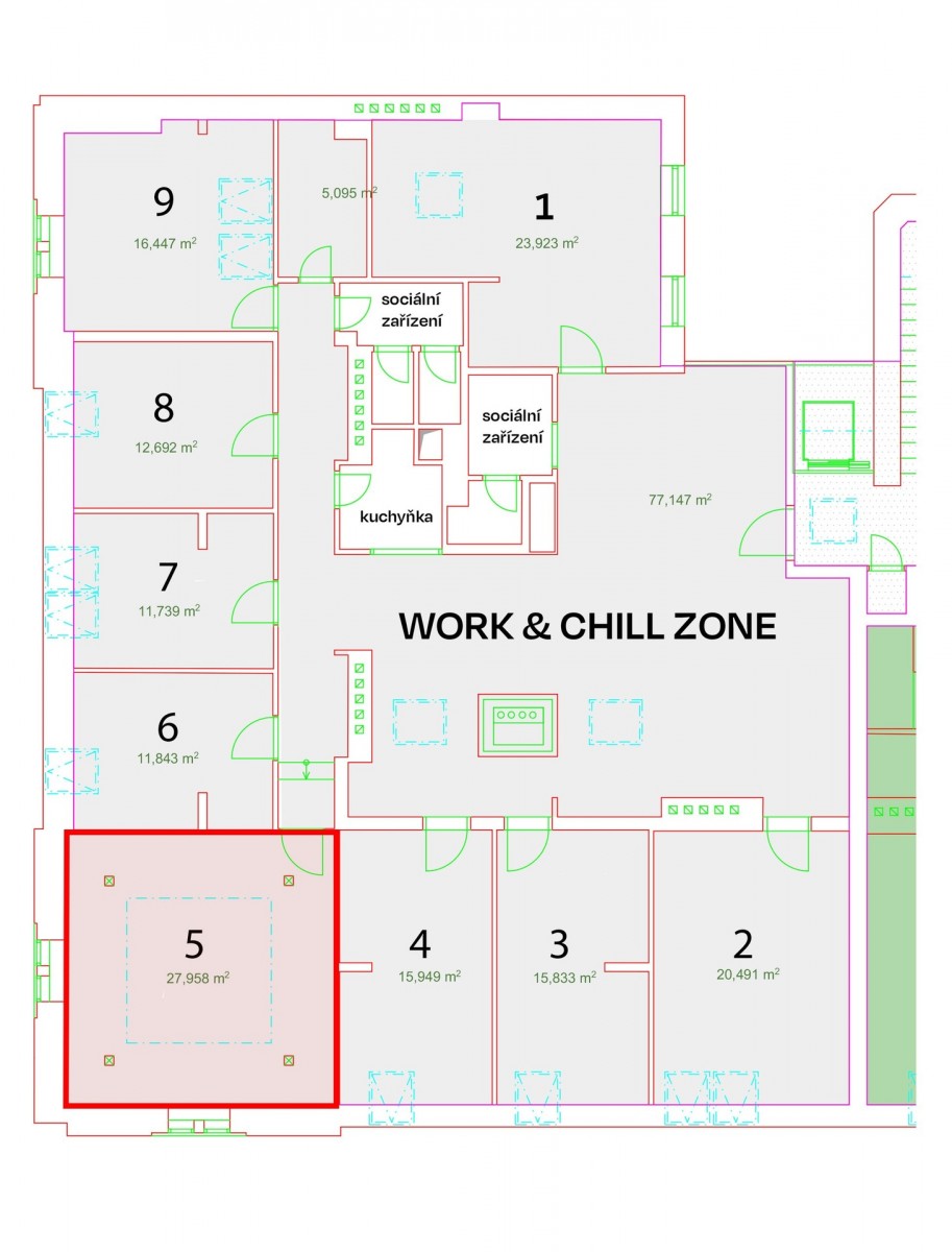 - útulná work & chill zóna – ideální pro neformální schůzky, odpočinek nebo kávu mezi meetingy