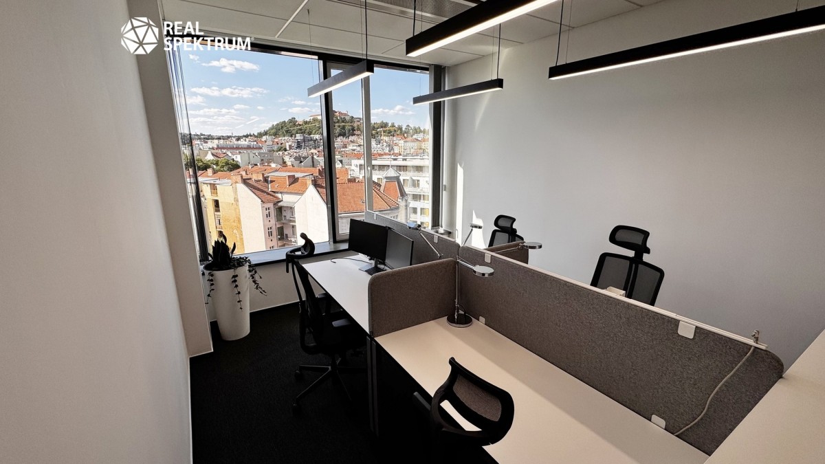 V zastoupení majitele nabízíme k pronájmu kancelářský celek o výměře 284 m² v 8. nadzemním podlaží budovy TOWER boutique v rámci Business Complexu TITANIUM. Prostor se nachází ve vyšším patře s unikátním panoramatickým výhl...edem na dominanty města Brna – Petrov a Špilberk. Díky velkorysému prosklení nabízí nadstandardní přísun denního světla a reprezentativní pracovní prostředí v jedné z architektonicky nejvýraznějších budov centra.
