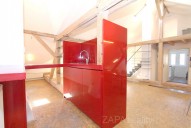 Atypický podkrovní prostor 110m2 ve 3. patře cihlového domu tvoří hlavního otevřený prostor o výměře 89m2, jehož součástí je kuchyňka, příslušenství tvoří koupelna s sociální zařízení WC 4m2, sklad 7m2, předsíň a výškově oddělená místnost ve věžičce 6m2, která je vhodná k přespání. Vhodné využití jako atelier, kancelář nebo pracovna.
