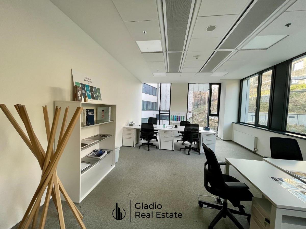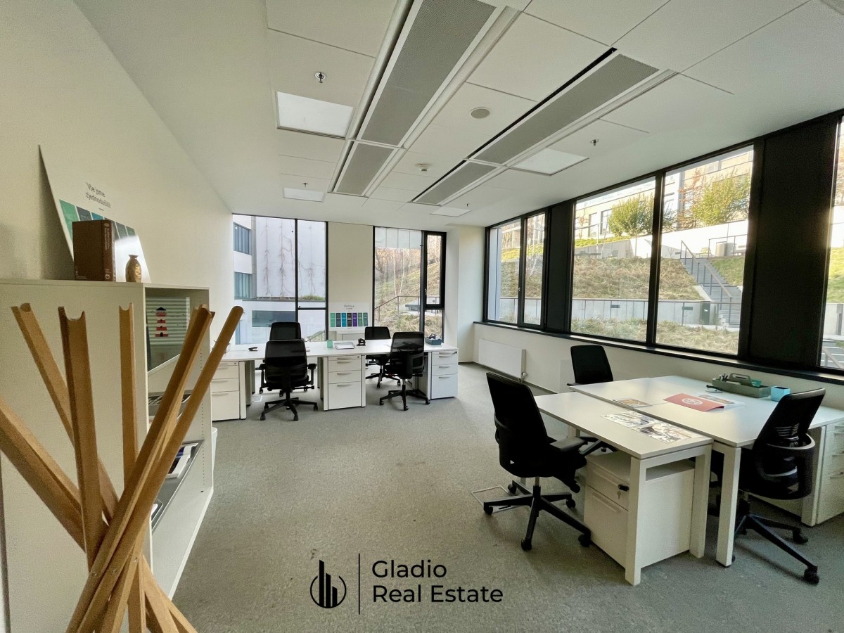 Nabízíme k pronájmu prostornou kancelář o rozloze 41 m², která nabízí nejen vynikající pracovní zázemí, ale také nádherný výhled na severozápad. Tento moderní prostor je ideální pro týmy až 7 lidí a je plně vybaven kvalitním kancelářským nábytkem, který splňuje i ty nejvyšší nároky. Kancelář je navržena tak, aby se zde každý člen týmu cítil pohodlně a produktivně. Světlé a vzdušné prostředí spolu s komfortními prvky zajišťují ideální podmínky pro efektivní práci i odpočinek. Pokud hledáte prestižní kancelář, která nabízí nejen vysoký standard, ale i příjemnou atmosféru pro vaši práci, tato nabídka je pro vás ideální.