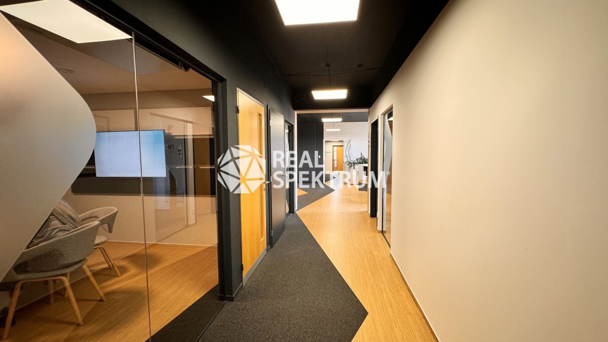 Kombinace menších kancelářských prostor a zasedacích místností.