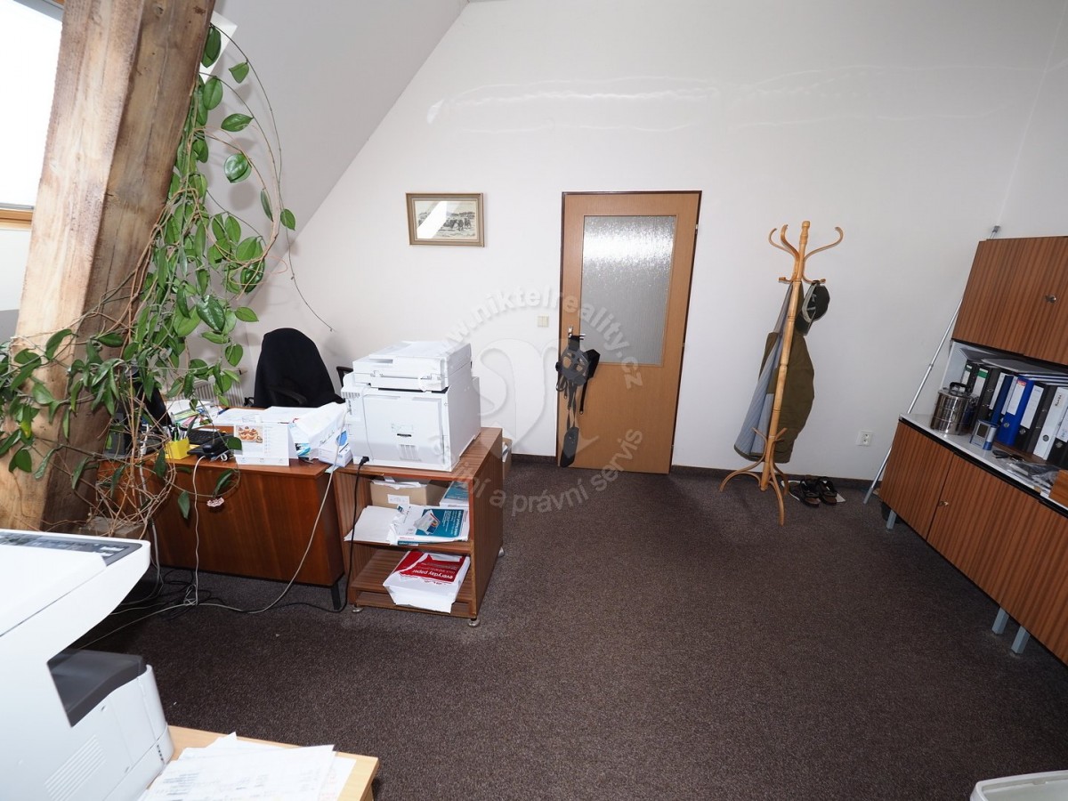 Kancelářské prostory jsou situovány v podkroví budovy a jsou přístupné po prostorném betonovém schodišti, přístupné jsou samostatným vchodem ze severovýchodu. Ze schodiště se nejprve vstupuje do společného prostoru, v němž je umístěný kuchyňský kout, posezení a na které navazují vzájemně oddělená sociální zařízení. Střecha objektu je sedlová a v každém štítu budovy je realizována velká technická místnost bez oken k příp. pronájmu (v jedné vestavěný elektronický trezor), využívání jako sklad/ archiv, apod. Ze společné středové chodby se vstupuje do samostatných kanceláří se střešními okny, na konci chodby je rovněž realizována velká zasedací místnost, s možností příp. rozdělení i na dvě menší.