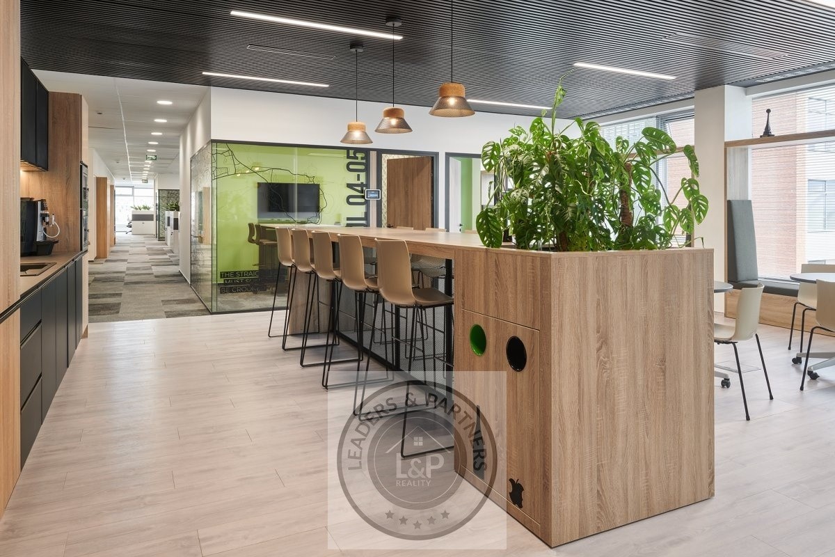 Nabízíme pronájem variabilních kancelářských prostor o ploše v rozmezí 300m2 - 1244m2 s pěkným výhledem v 8/9NP (deváté nadzemní patro) v moderním business centrum na Praze 5. Administrativní komplex ...se nachází přímo u stanice metra Nové Butovice, v těsné blízkosti Rozvadovské spojky. Prosklené kanceláře s přirozeným denním světlem a výhledem nabízejí zasedací místnosti s videokonferenční technikou, telefonní linky s vysokorychlostním internetové připojeníem, business lounge včetně zázemí s kuchyňkou.