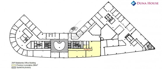 Kancelářské prostory o rozloze 305 m2 se nacházejí ve 2. NP (druhé nadzemní patro).