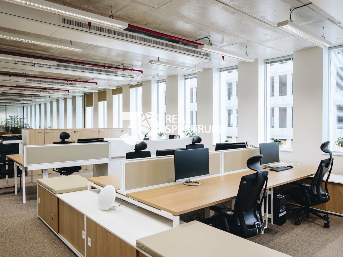Zdvojené podlahy, klimatizace, PC rozvody, EPS, vnitřní dispozice dle požadavků nájemce, otvírané okno,