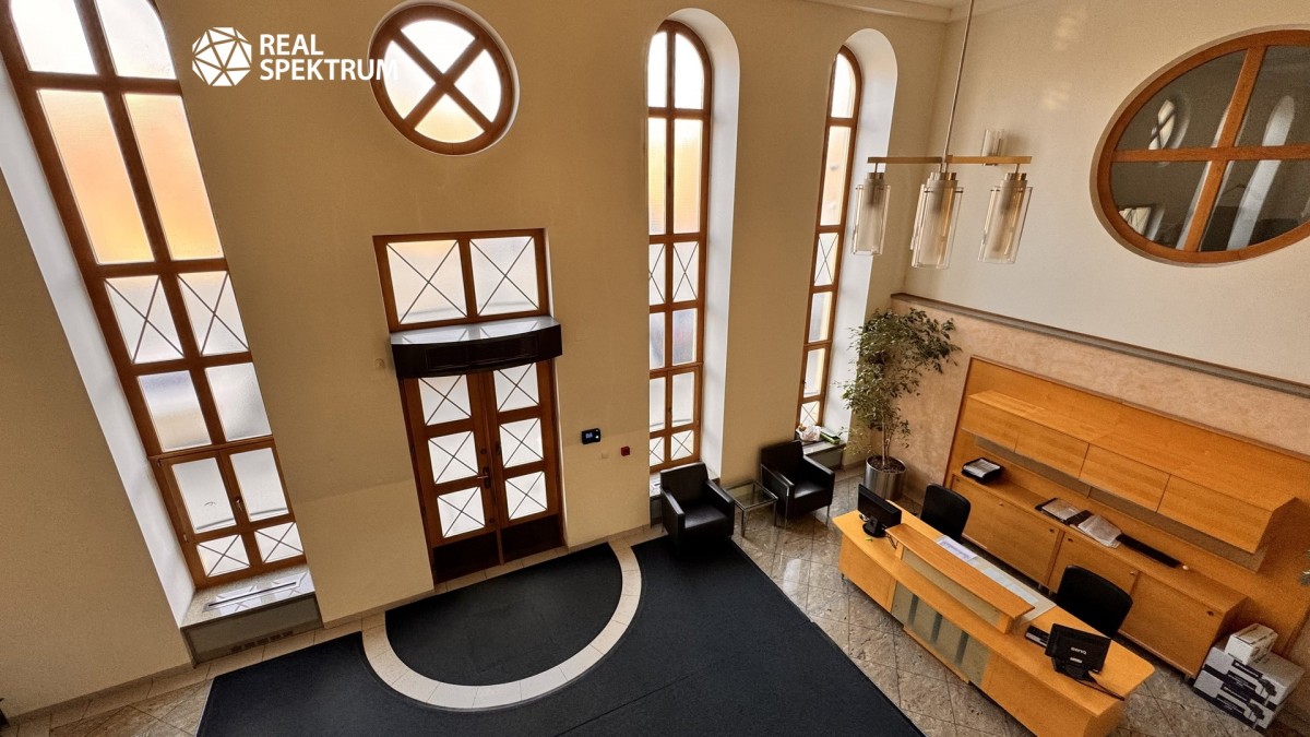 Dispozice nabízí kombinaci několika samostatných kanceláří různých velikostí, větší zasedací místnost, centrální komunikační halu a kompletní sociální zázemí včetně kuchyňky. Prostor je vhodný pro administrativní sídlo firmy. Díky rohové poloze budovy a velkému počtu oken jsou kanceláře velice dobře prosvětlené denním světlem, což vytváří příjemné pracovní prostředí. Patro je přístupné po hlavním schodišti i výtahem.
