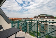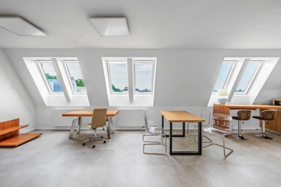 Pronájem zajímavě řešeného loftového bytu 6+kk (321, 9m2) s možností flexibilního využití umístění sídla firmy s případným rezidenčním bydlením společně, s unikátní t...erasou (65, 6mm2) a neopakovatelnými výhledy na panorama Prahy, je umístěn v 5. podlaží uzavřené bytové rezidence. Příjemná lokalita v klidné části Žižkova nedaleko parku Parukářka nabízí veškeré služby i blízkost centra. Moderní, prostorově velkorysý byt s přímým výstupem na vlastní terasu 100 m2 s jacuzzi ve 4. a 5. podlaží a orientací oken do vnitrobloku zajišťuje dokonalý klid, kontrastující s okolním živoucím centrem města.