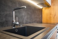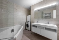 K vybavení patří nová okna s izolačními trojskly, interiérové a exteriérové žaluzie v obývací části a jídelně, kompletní kuchyňská linka od italského výrobce včetně vinotéky a spotřebičů, klimatizace, bezpečnostní dveře, vinylové podlahy v dílcích, vestavěné skříně v prostoru haly a koupelna s moderní sanitou, hlavní koupelna z mramoru. Umístění loftu v posledním podlaží domu a příslušnost výhledů do zeleně parku Parukářka a unikátní privátní střešní terasa navozuje pro rezidenty pocit klidné a příjemné atmosféry v dosahu centra. Vytápění bytu zajišťuje centrální kotelna v domě. Cena nájmu zahrnuje parkovací stání v hlídaných podzemních garážích.
