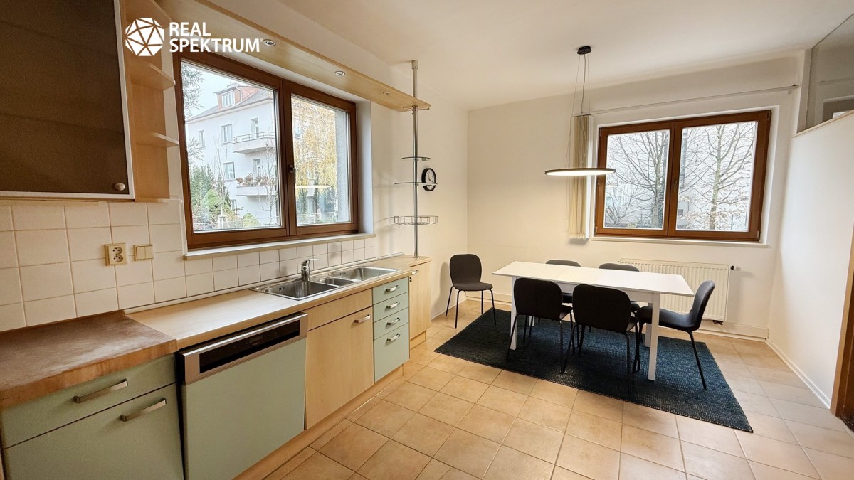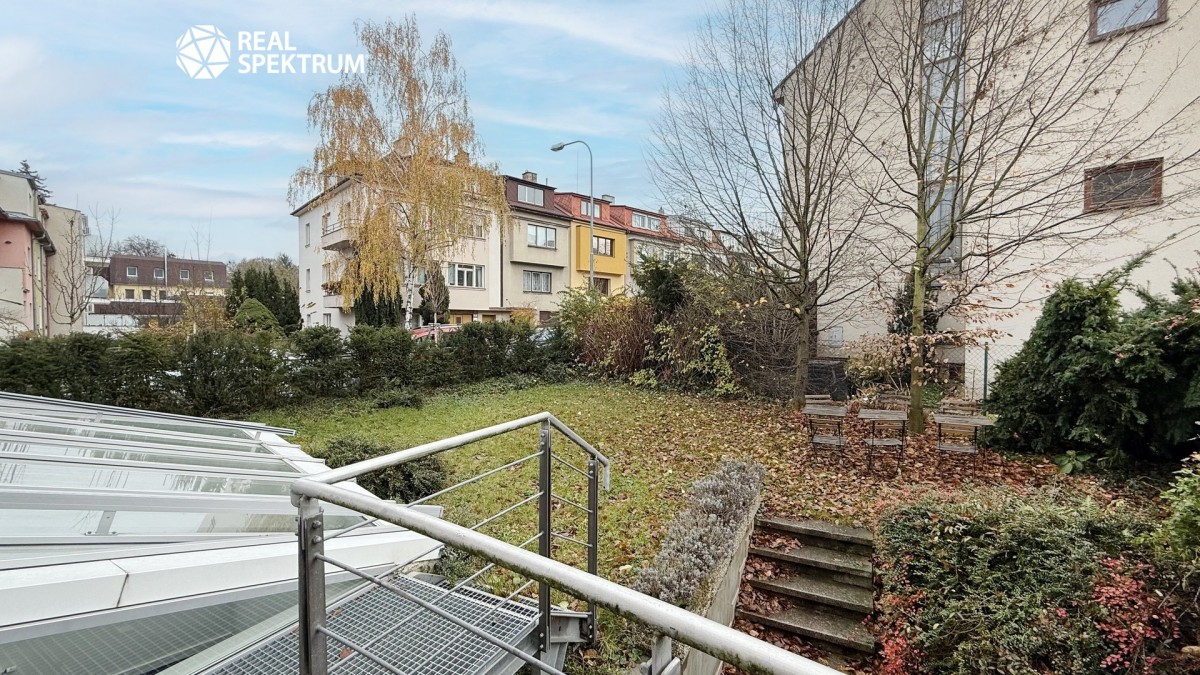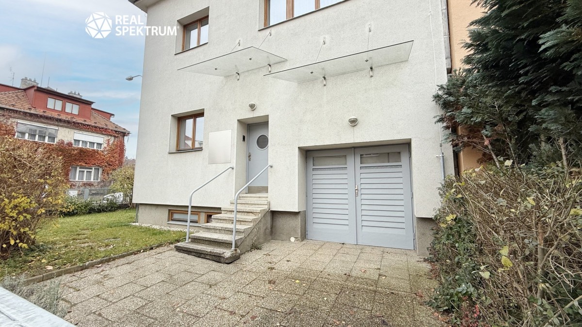 Velkým benefitem je udržovaná zahrada za domem, která vytváří příjemné pracovní prostředí pro zaměstnance i možnost neformálních setkání s klienty. Součástí pronájmu je garáž přímo v objektu a jedno parkovací stání před garáží.