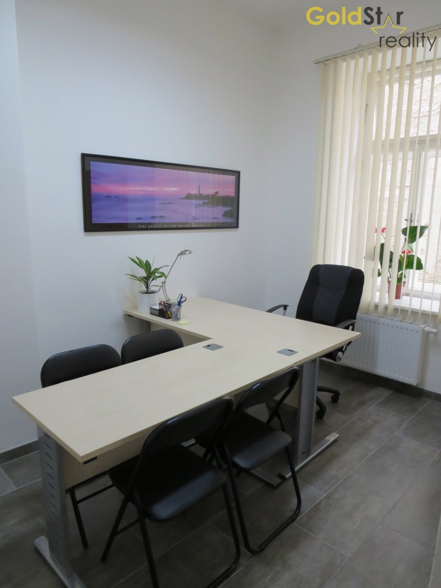 Pronájem zařízené kanceláře s možností parkování poblíž centra města. Kancelář se nachází ve zvýšeném přízemí na Kollárově náměstí, Olomouc. Přímo před kanceláří k dispozici prostorné placené parkoviště. Celková plocha či...ní cca 40m2, z toho k pronájmu 1 krát samostatná uzamykatelná kancelář cca 11m2, společná zařízená kuchyňka se sprchou, sociální zařízení WC s umyvadýlkem, k dispozici samostatná zasedací místnost a vstupní hala pro klienty. Bezpečnostní vchodové dveře, k dispozici malý balkónek. Možnost využít vysokorychlostní připojení k internetové připojeníu (vlastní síť). Požadovaná vratná kauce 9. 000, - Kč. Cena uvedena již včetně energií. PENB prozatím nedoložen - třída G. Volné dle dohody. Více info na vyžádání.