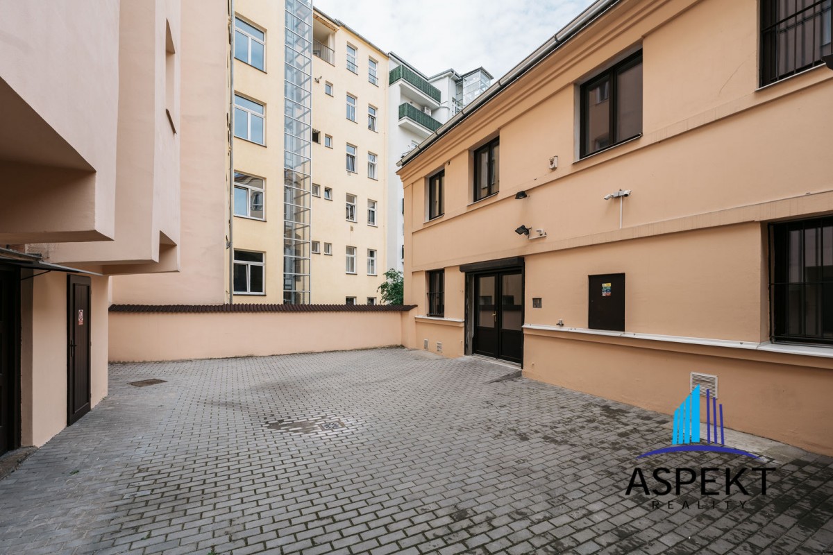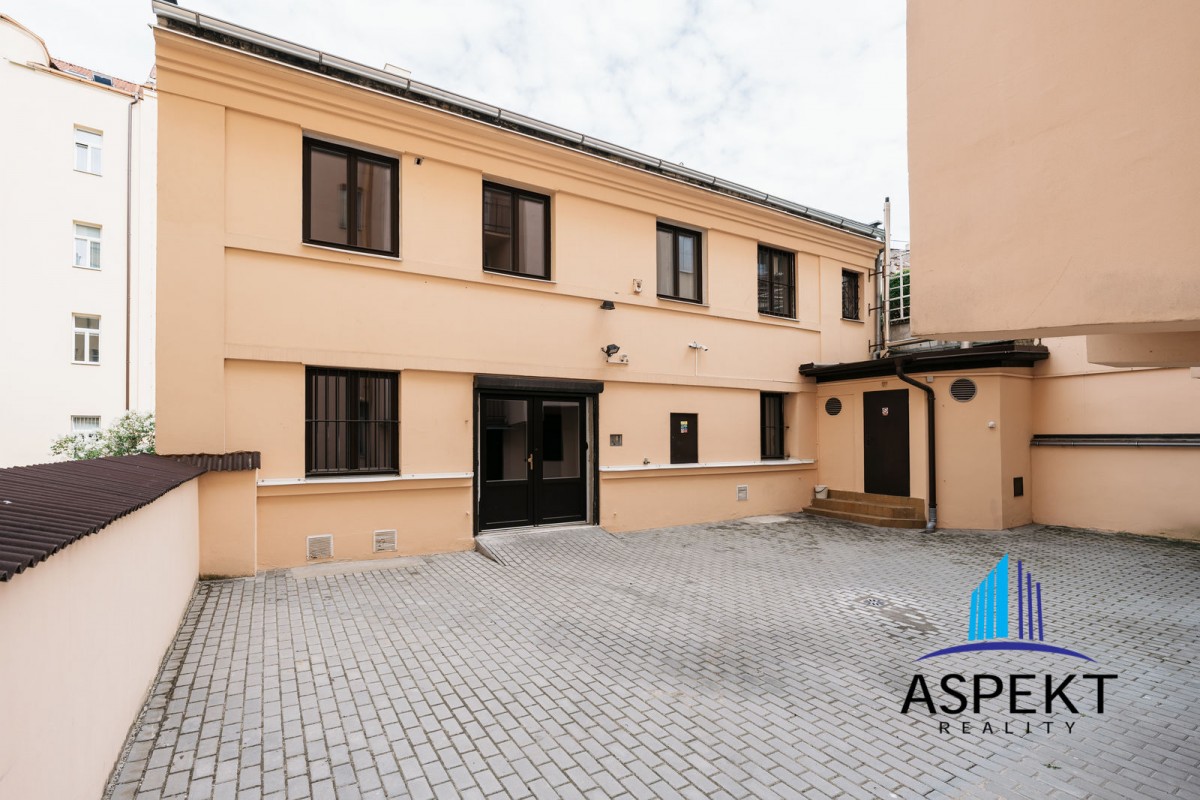 Prostory o celkové ploše 400 m² se nacházejí ve vnitrobloku, v budově která prošla celkovou rekonstrukcí. Samostatný přístup ze dvora. Bud...ova je rozdělena na suterén, přízemí a jedno patro. K dispozici 5 oddělených místností, 4 toalety, sprchový kout, kuchyňka s myčkou, sklady, nákladní výtah, vzduchotechnika, klimatizace, zabezpečení. Možnost parkování pro 3 vozy.