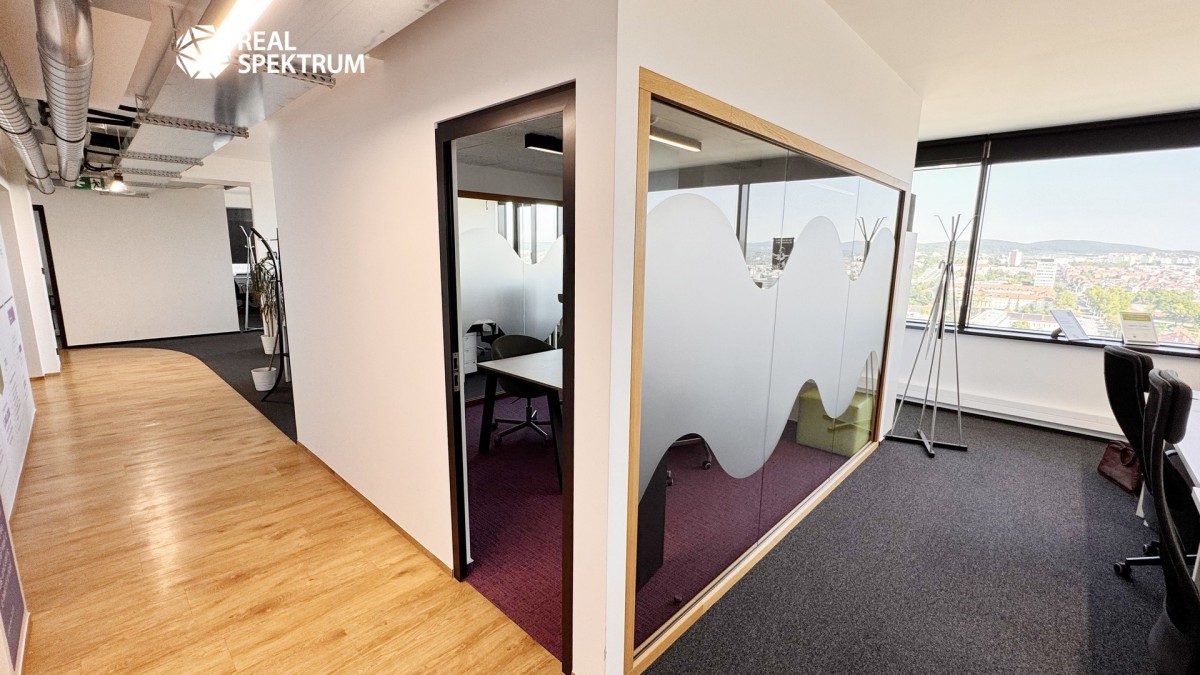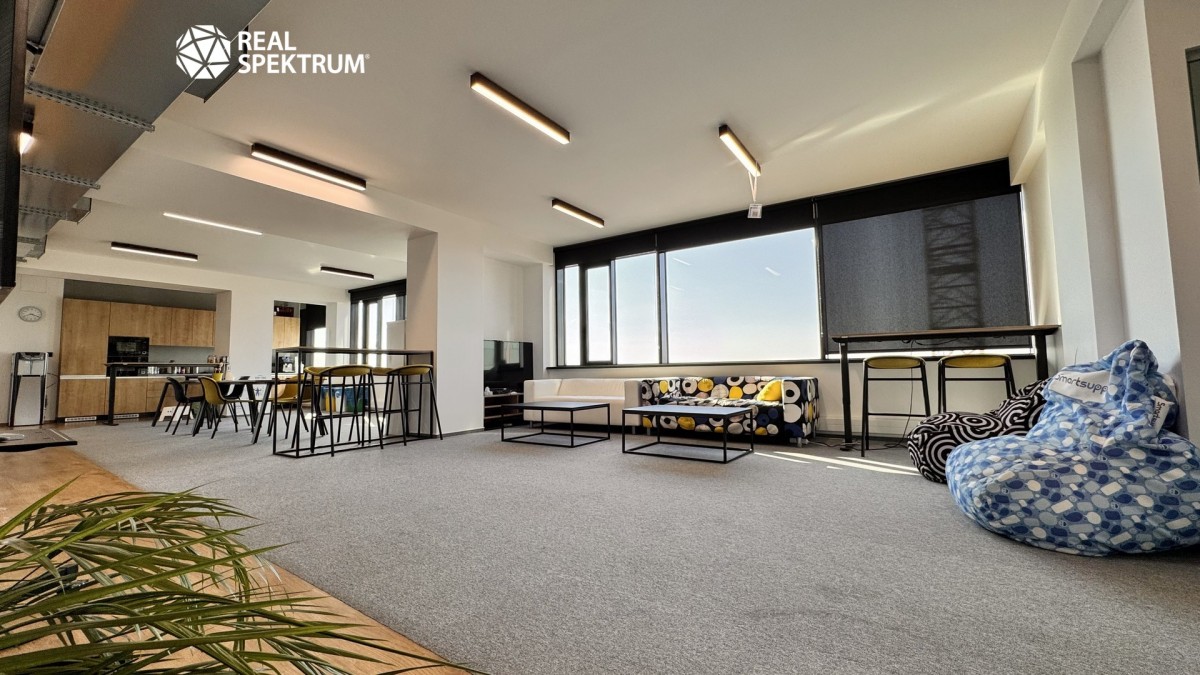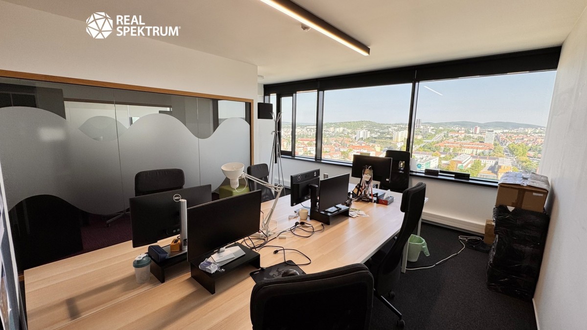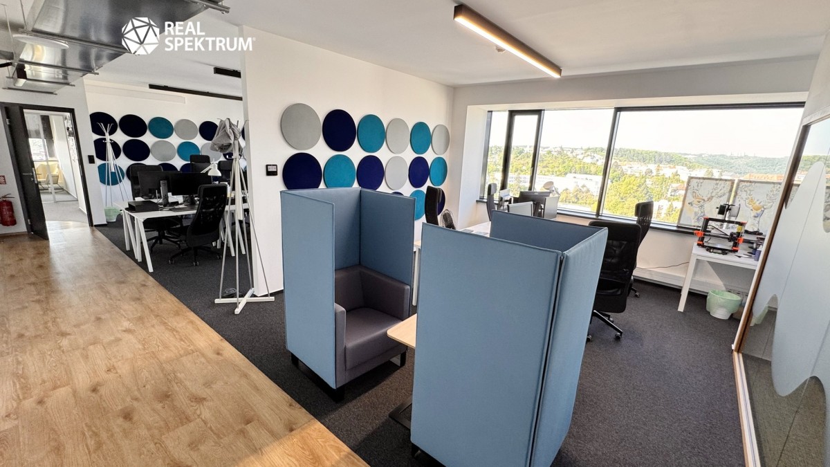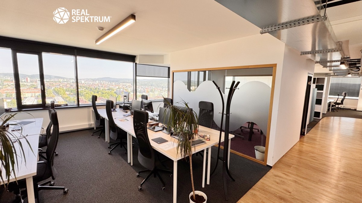 Výhled? Super. Přístup? 24/7. Vybavení? Kompletní – zdvojené podlahy, zátěžové koberce, otevíratelná okna, žaluzie, vysokorychlostní internetové připojení, tepelná čerpadla. Recepce, výtahy, ostraha, parkování? Samozřejmost.