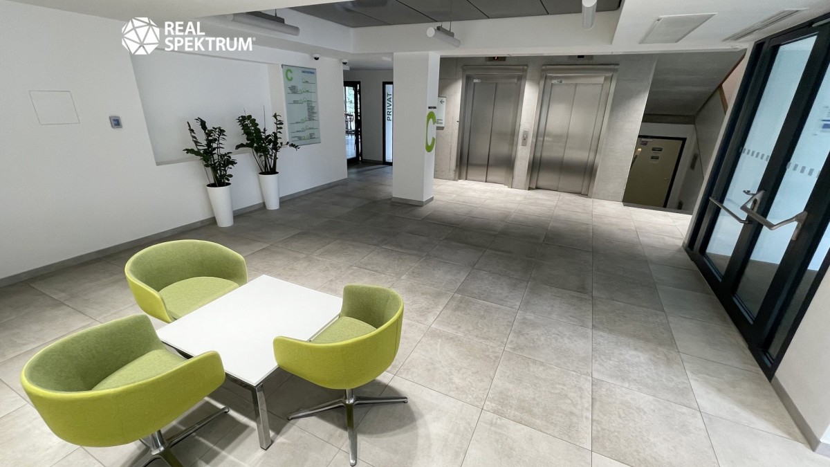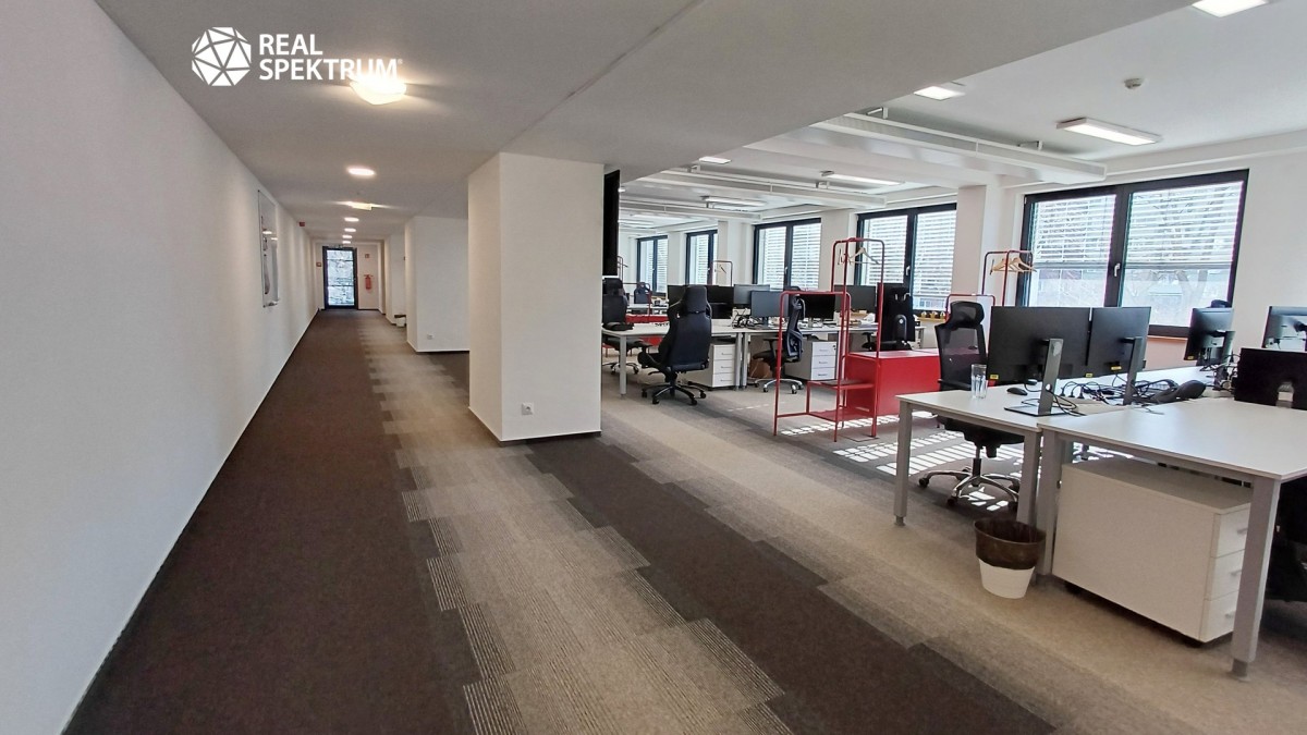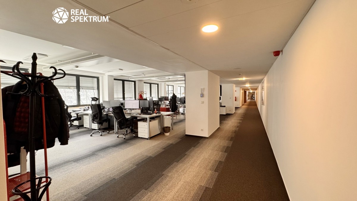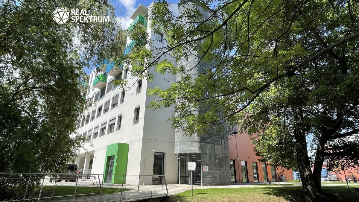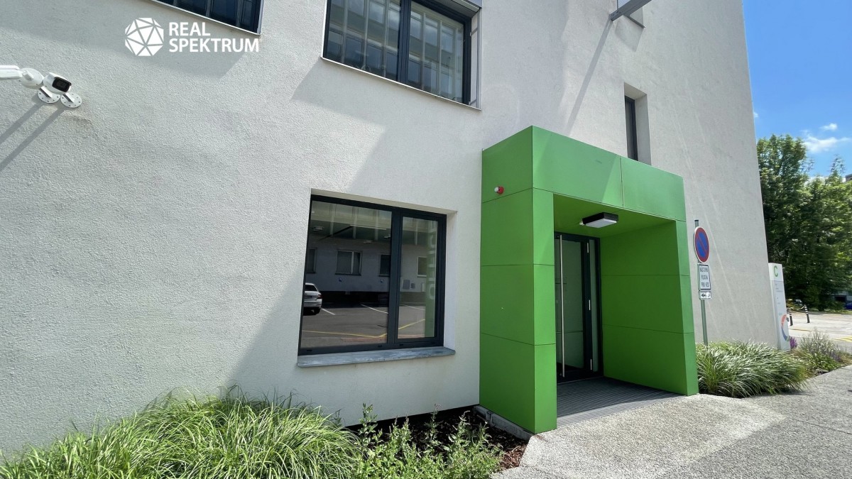 Jednotka je situována ve 2. patře šestipodlažní budovy a nabízí klidné pracovní prostředí s výhledem do zeleně areálu.