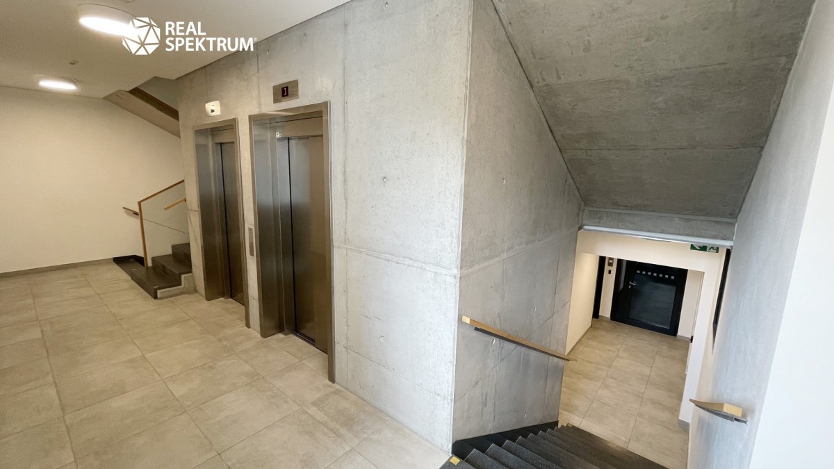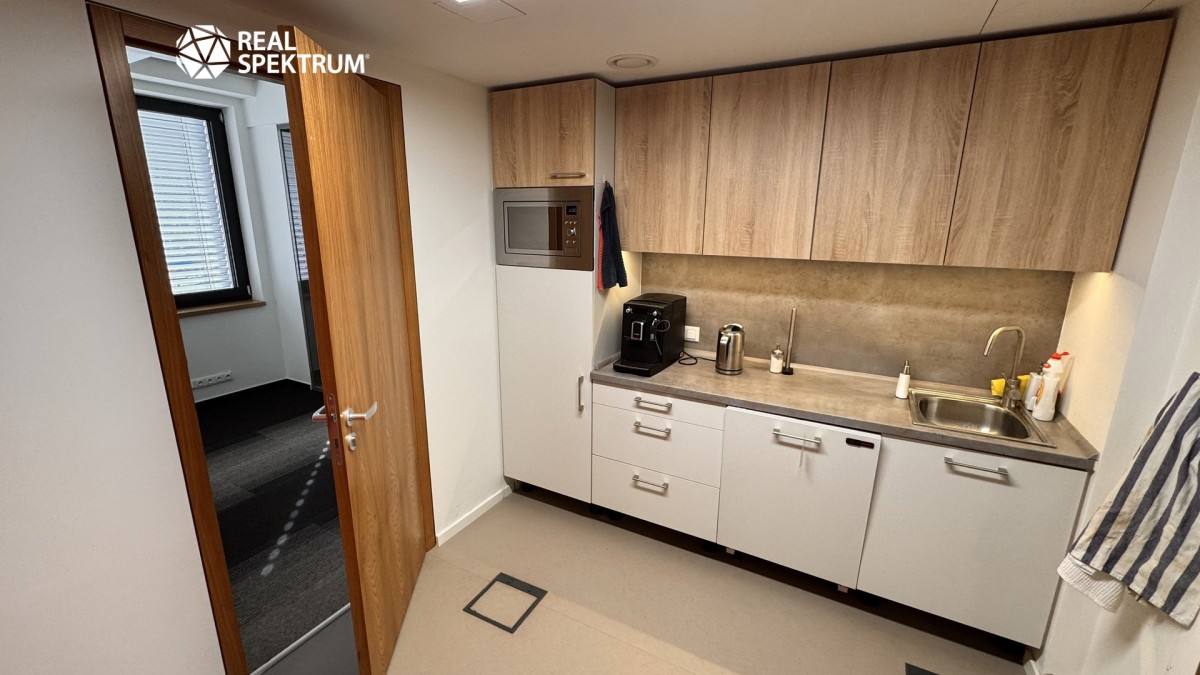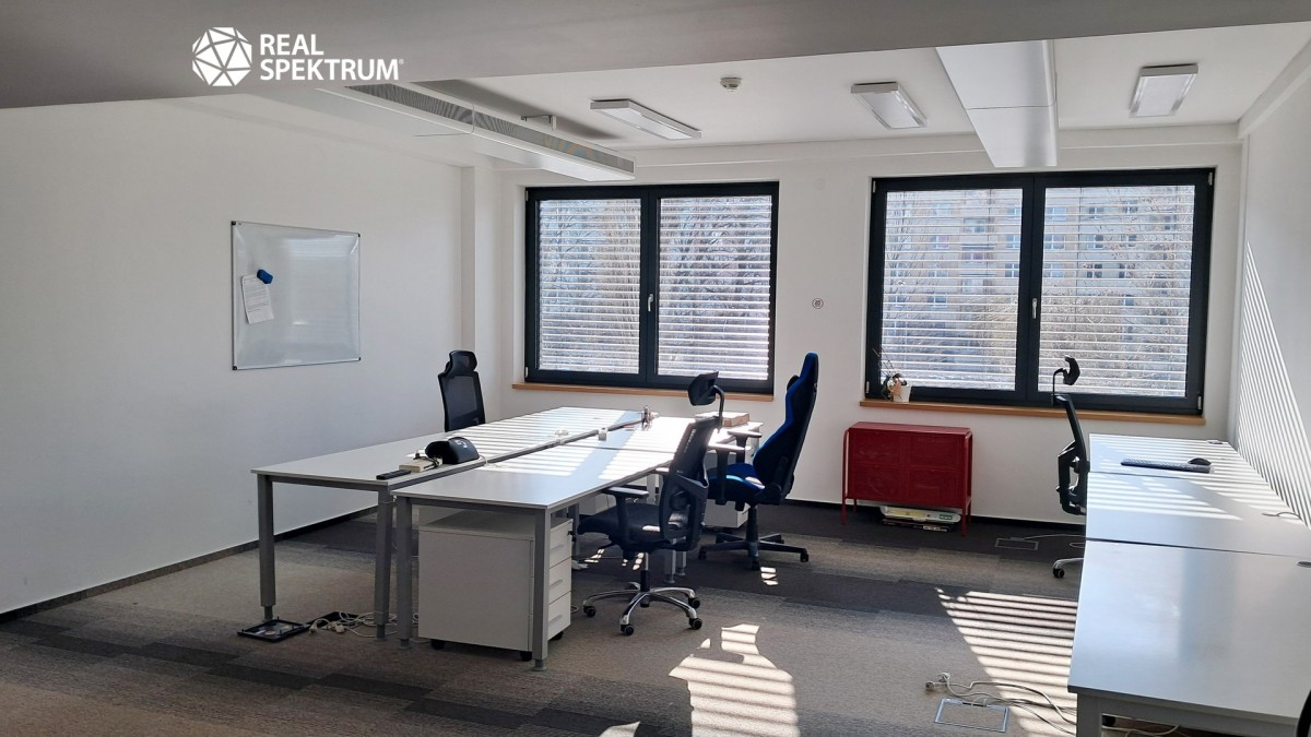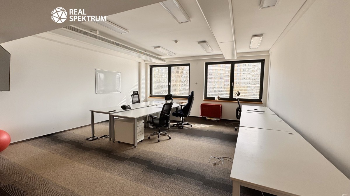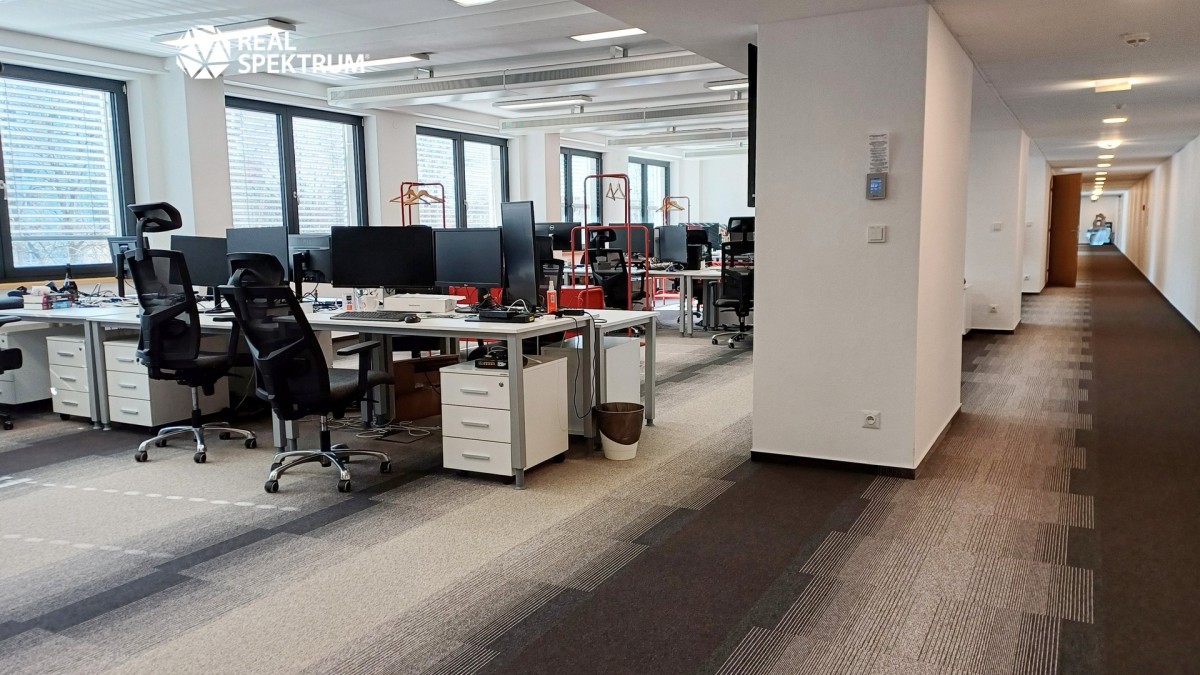 Jednotka je situována ve 2. patře šestipodlažní budovy a nabízí klidné pracovní prostředí s výhledem do zeleně areálu.