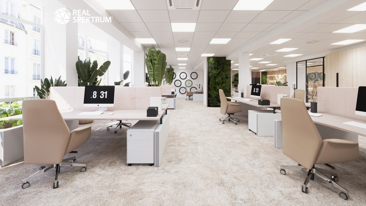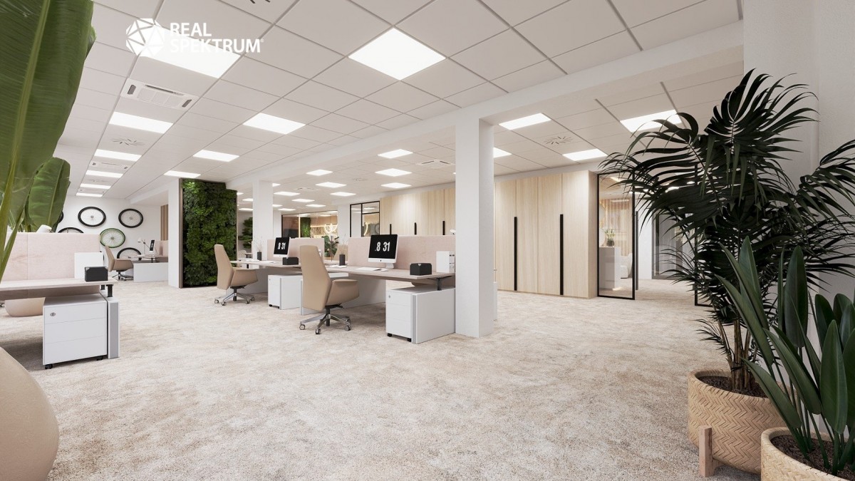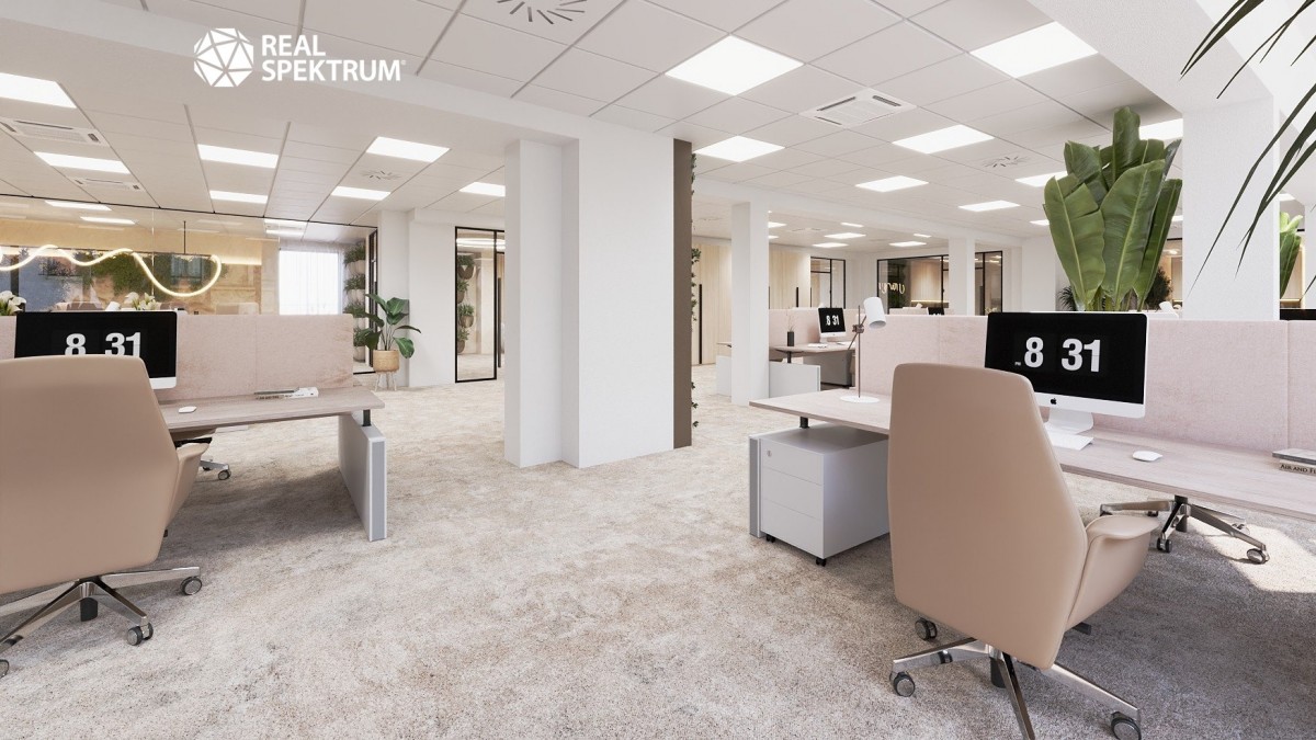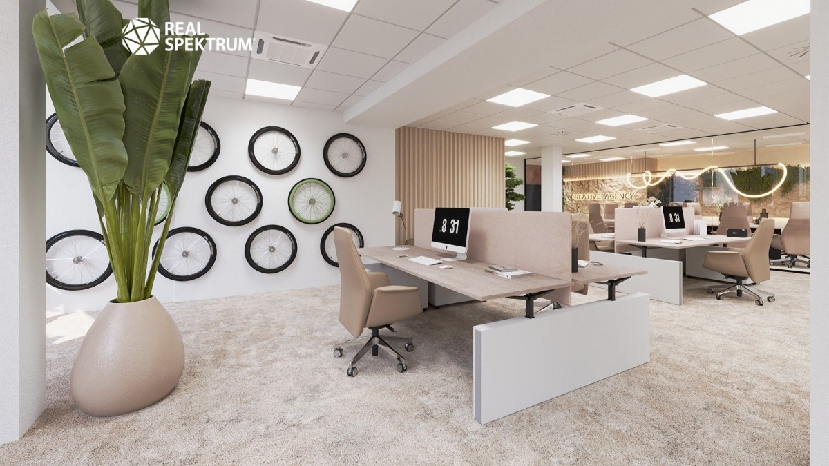 Celek je rozdělen na jednotlivé kanceláře s vlastním sociálním zázemím a kuchyňkou.