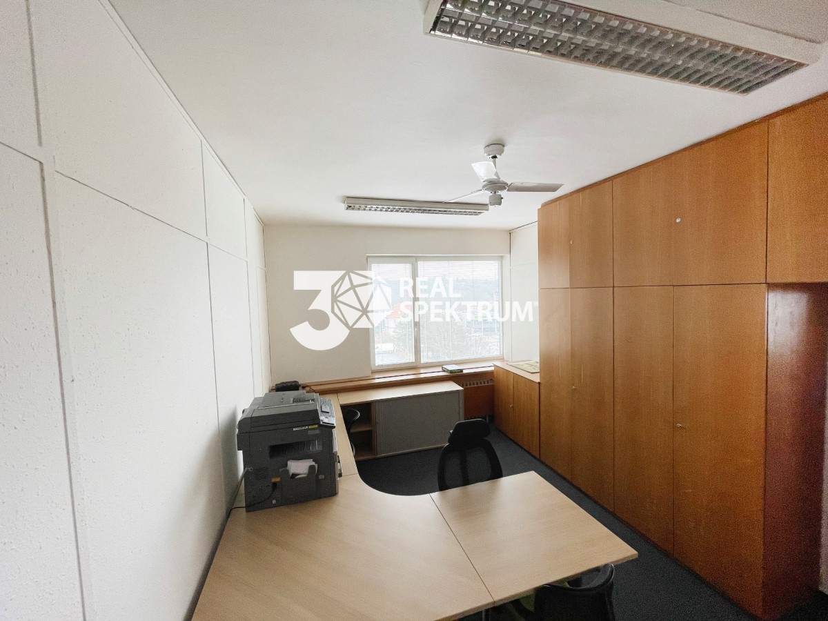 Samostatný kancelářský celek ( celé 4. NP (čtvrté nadzemní patro) ) - celkem 20 kanceláří po obvodu budovy + zázemí. Po dohodě s majitelem možné změny dispozice.