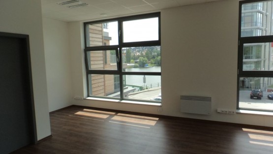 Kancelářské prostory k pronájmu 52, 50m2 se nachází ve 3. NP (třetí nadzemní patro) moderní administrativní budovy s moc hezkým výhledem na řeku v ulici Strakonická, Praha 5, Hlubočepy. Prostory jsou světlé díky... francouzským oknům. Na patře je k dispozici společná kuchyňka a sociální zařízený. Vybavení kanceláře: plovoucí podlaha, vertikální žaluzie po obvodu všech oken, otevírací okna.