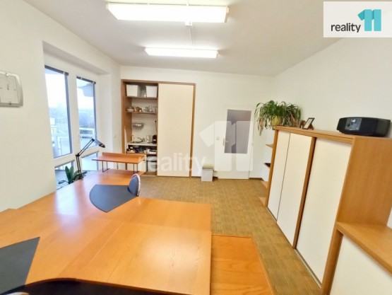 Větší místnost je nyní zařízena na dvě až tři pracovní místa, je zde velká vestavěná skříň, ve které je šikovně ukrytá kuchyňka s malou lednicí a také police na šanony. V menší místnosti je jednací stůl a komoda. Na podlahách velice kvalitní zátěžový koberec. Možnost připojení k internetové připojeníu Vodafone. V okolí veškerá občanská vybavenost, drobné obchody, lesopark, stanice metra. Doporučujeme pro menší společnost, jako poradnu, apod. Kolaudováno jako ateliér.