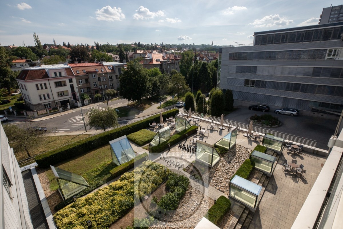 Nabízíme k pronájmu kancelářské prostory v administrativní budově ( kancelářský komplex ) o celkové užitné ploše 55m2 v 1NP (první nadzemní patro) ( přízemí ) budovy. Komplex nabízí moderní kancelářské prostory, ...recepci, vstupy do budovy 24/7, ostrahu objektu, otevíratelná okna, klimatizaci, zdvojené podlahy, podhledy se zabudovaným osvětlením, klidné pracovní prostředí. K dispozici sdílená kuchyňka na podlaží, jídelna a restaurace s venkovní zahrádkou, fitness včetně sauny součástí objektu. Dále možnost využití prostorné společné terasy. Dostatek parkovacích prostor i pro návštěvníky a hosty zajištěno v podzemních podlažích budovy. Komplex nabízí klidné pracovní prostředí v atraktivní rezidenční čtvrti, díky praktické poloze disponuje nemovitost komfortním napojením na letiště i centrum Prahy. V okolí veškerá občanská vybavenost, v bezprostřední blízkosti i několik MŠ. Výborná dopravní dostupnost, stanice tram v dosahu 1 minuty, metro 5minut. K dispozici ihned. BEZ PROV (osobní vlastnictví)IZE RK.